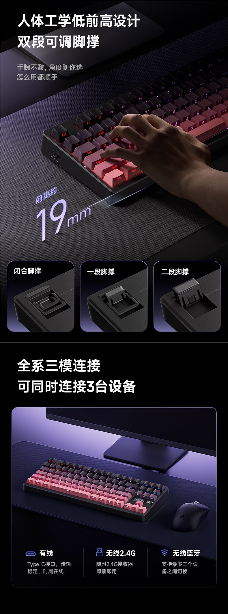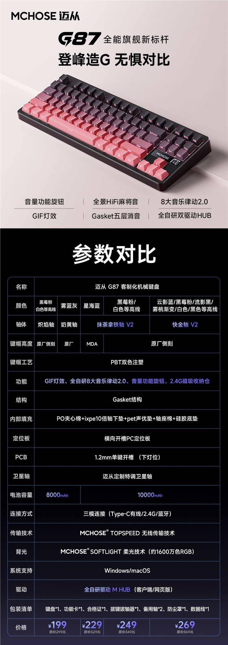 MCHOSE G87 맞춤형 기계식 키보드 가스켓 구조 무선 3모드 e스포츠 게임 사무실스토어 가기