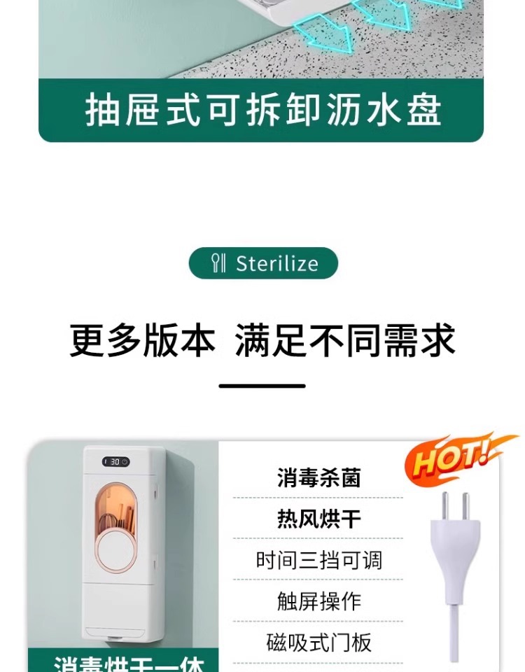 • 소독과 건조를 하나로 ★ 디지털 디스플레이 ★ 플러그인 모델/그린