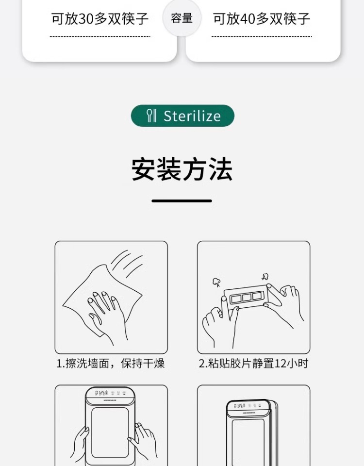 지능형 소독 젓가락 배럴 건조기 젓가락 소독기 가정용 소형 벽걸이 형 새로운 고급 상자스토어 가기