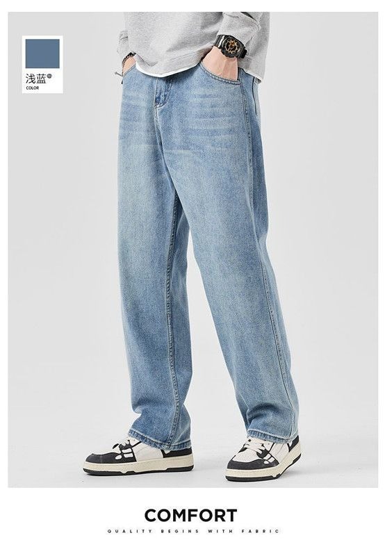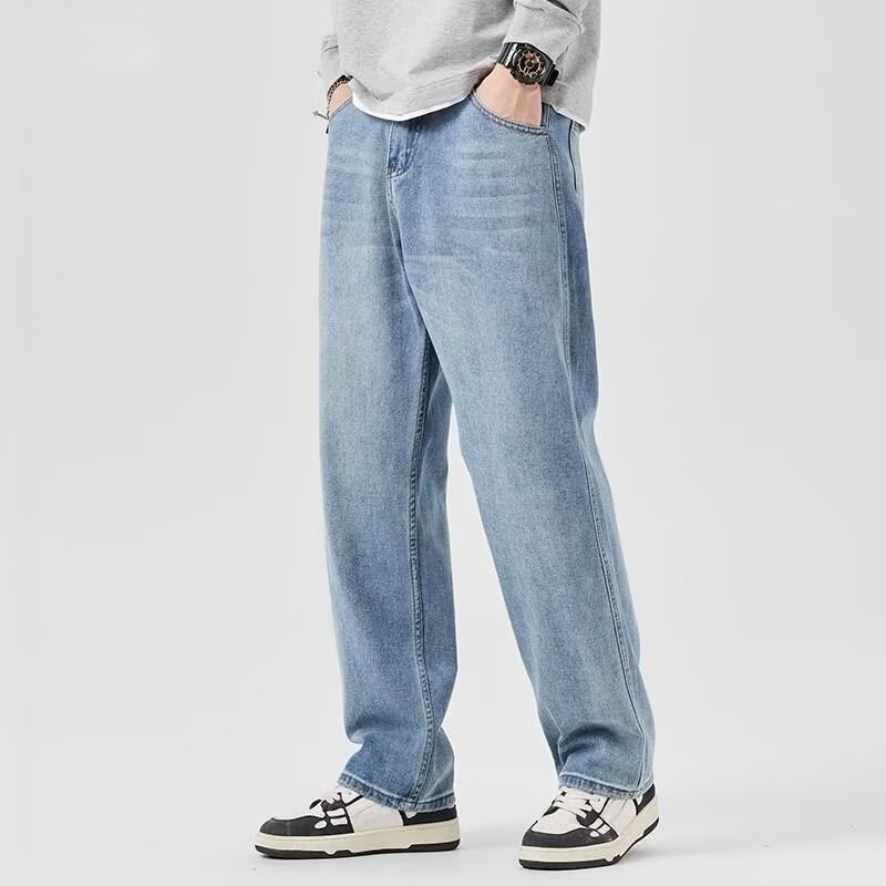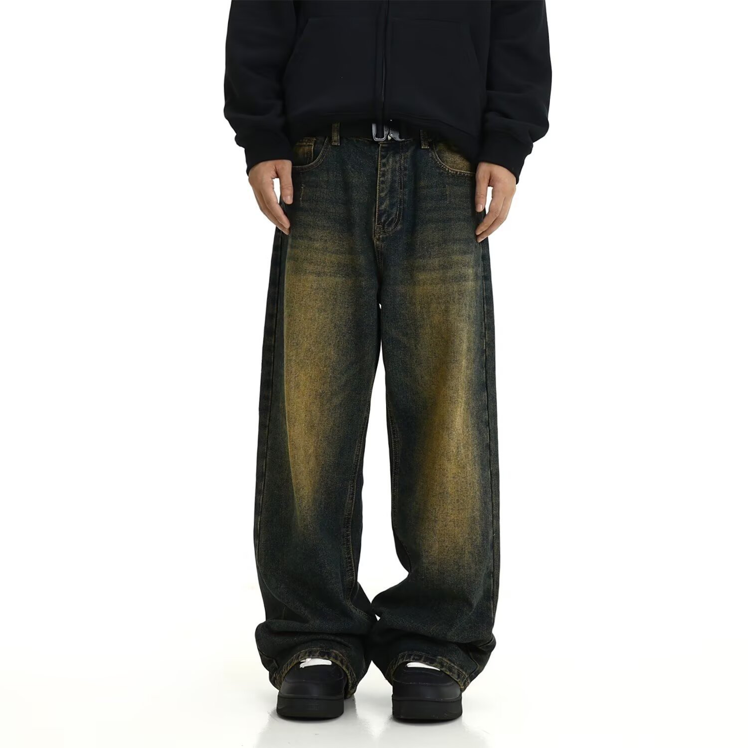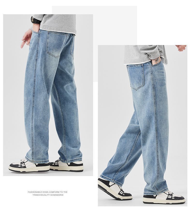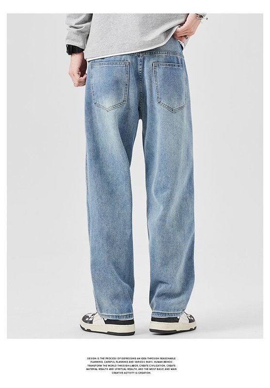 남성용 워싱 디스트레스드 청바지 여름 미국 하이 스트리트 패션 브랜드 다용도 루즈 스트레이트 와이드 레그 캐주얼 바지 대외 무역스토어 가기