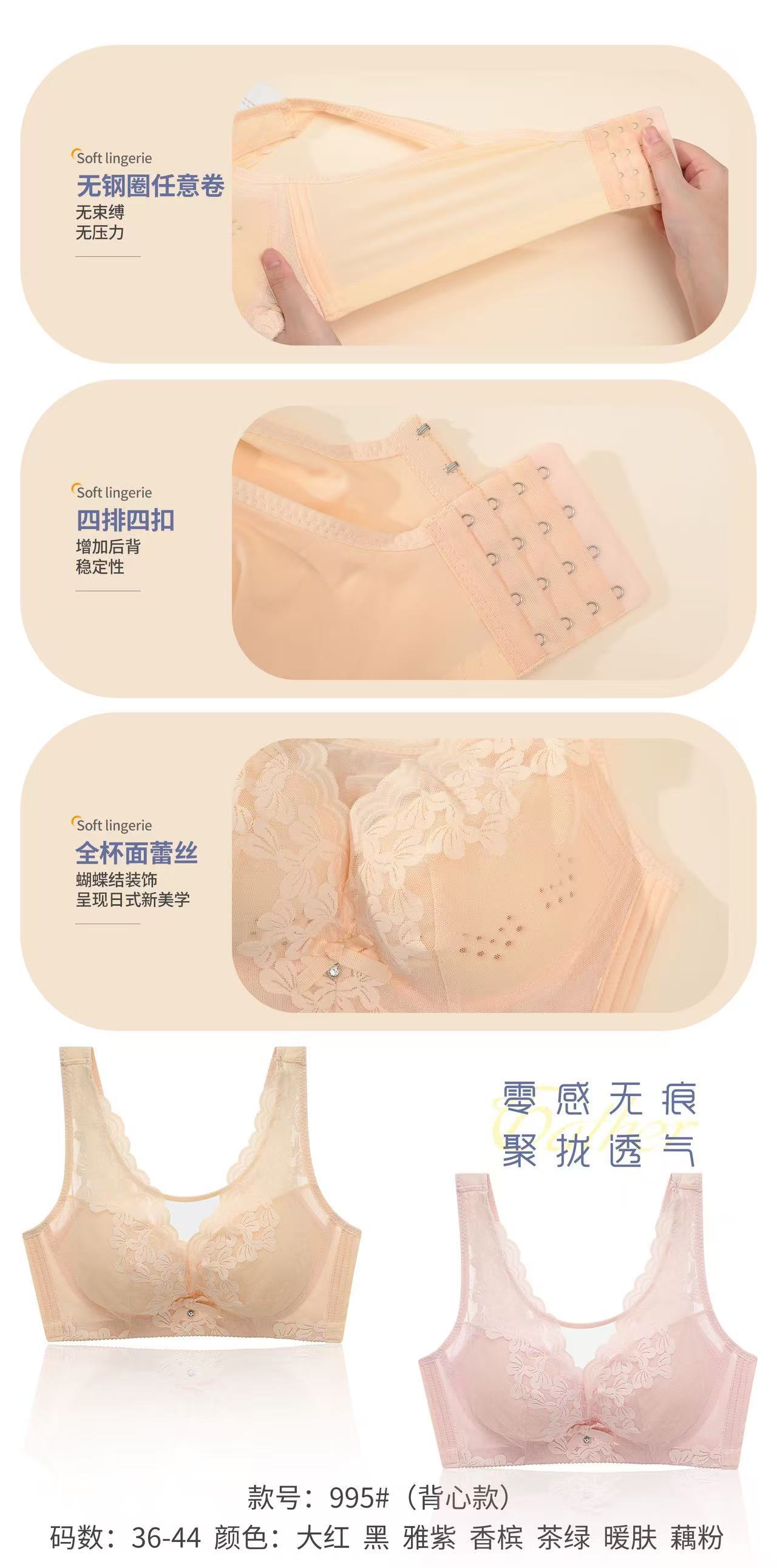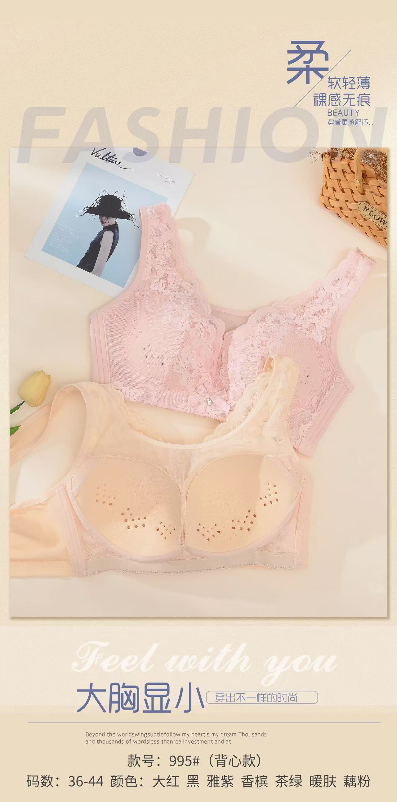 무봉제 라텍스 레이스 노와이어 브라, 큰 가슴을 작아 보이게 하는 편안한 풀컵 브라, 제조업체 도매