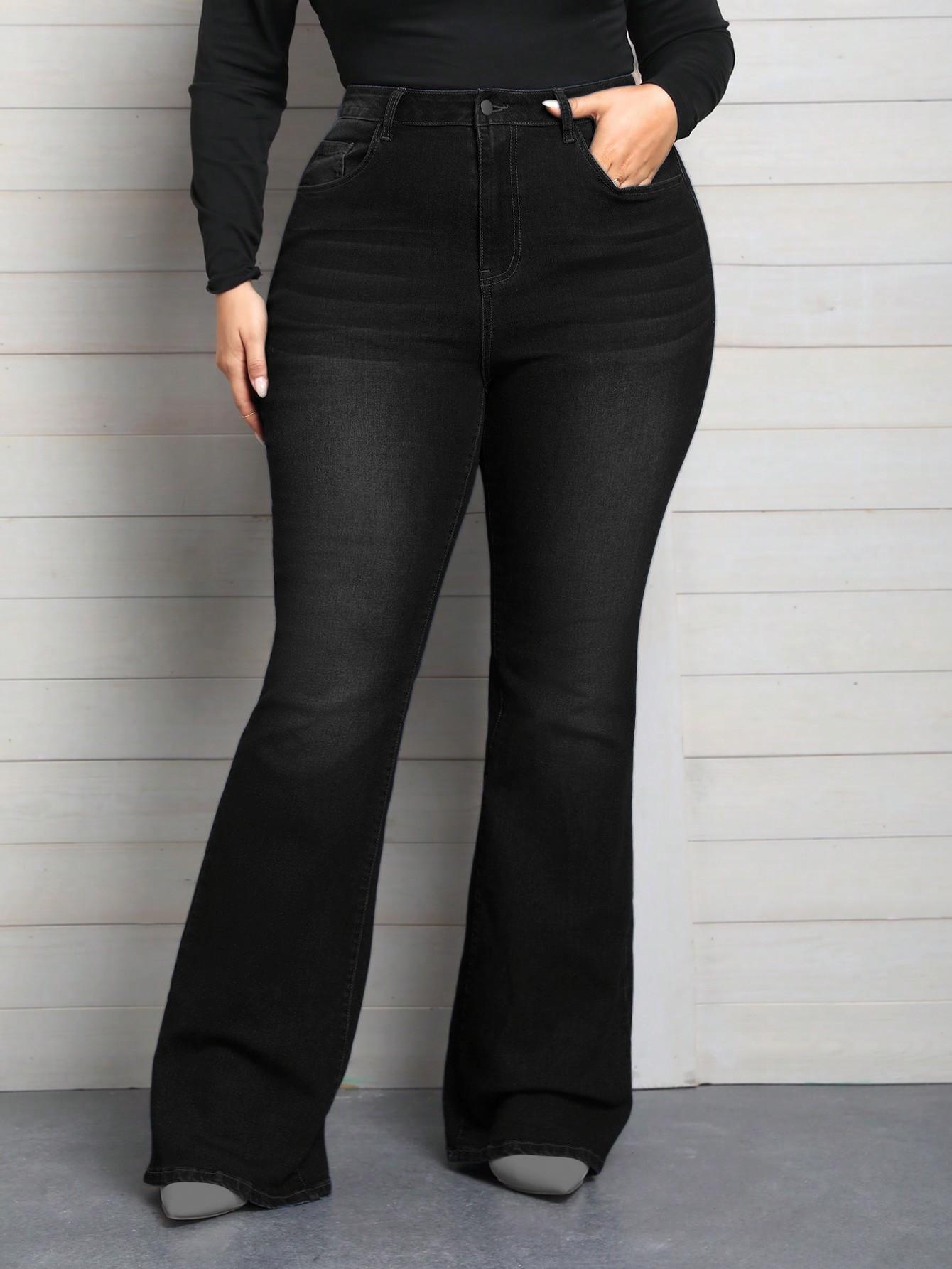 크로스보더 아마존 심플 플레어 청바지 레트로 싱글 브레스트 타이트 슬림 여성 플레어 바지 블루 라지 사이즈