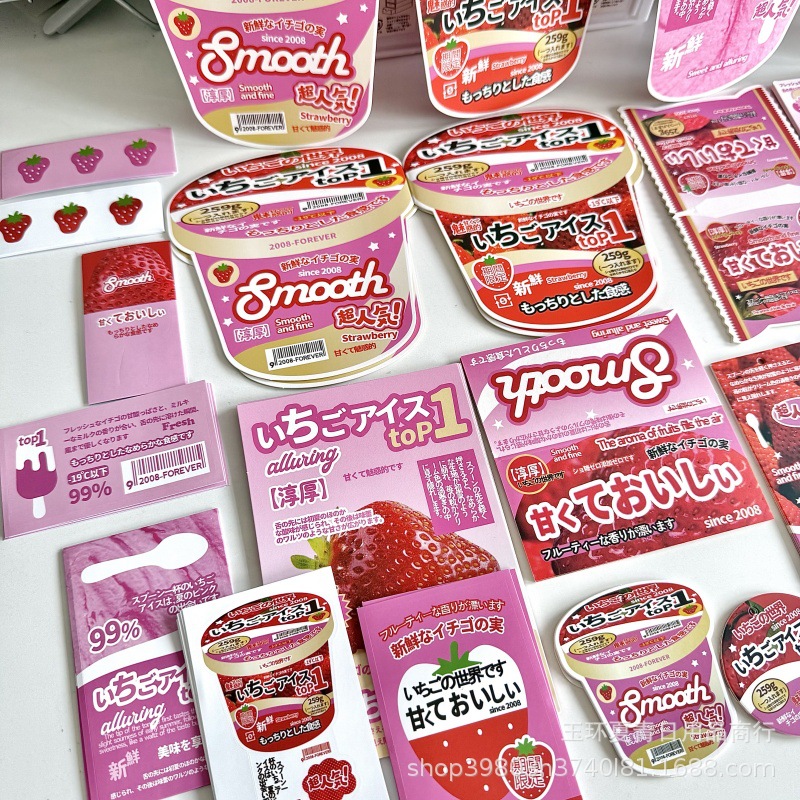 D의 32가지 래미네이트 딸기 아이스크림 문화적이고 창의적인 밀봉 스티커, 포장 재료, 다이컷 DIY 접이식 스티커