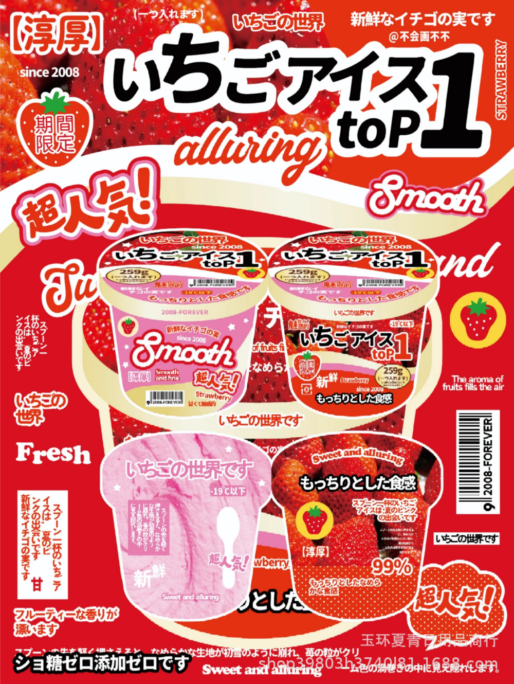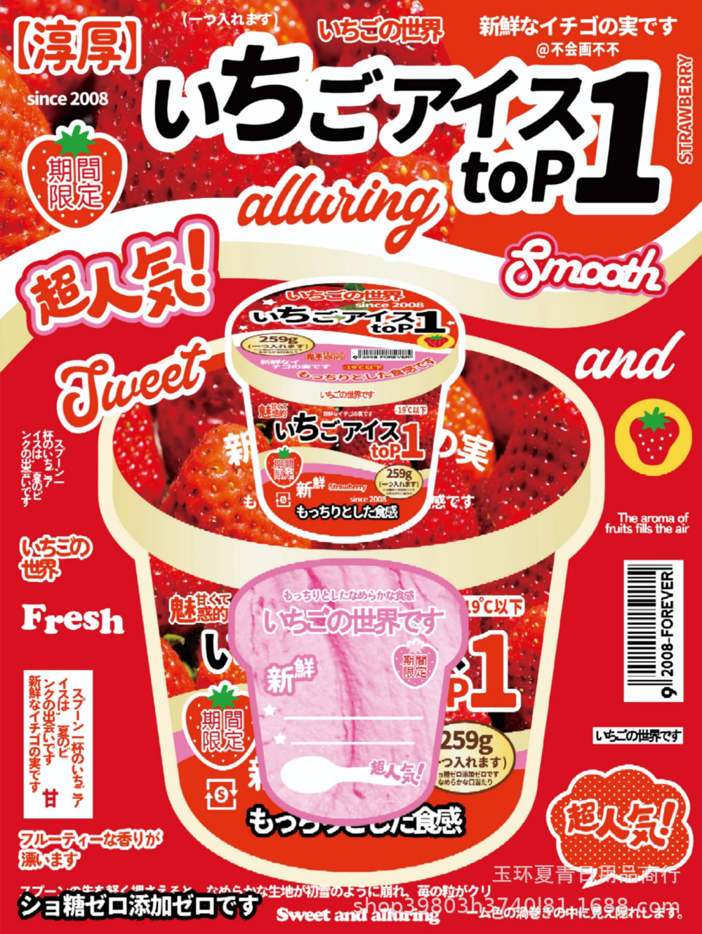 D의 32가지 래미네이트 딸기 아이스크림 문화적이고 창의적인 밀봉 스티커, 포장 재료, 다이컷 DIY 접이식 스티커스토어 가기