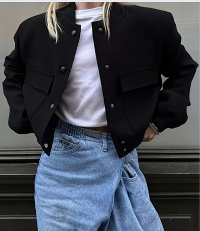 2025 새로운 유럽과 미국의 재킷 기질 스탠드 칼라 대형 포켓 중립 스타일 여성 재킷 작은 향기 스타일 봄, 가을 재킷 여성