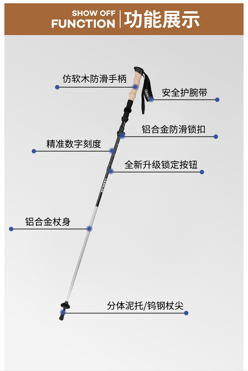 모조 코르크 손잡이 트레킹 스틱, 알루미늄 합금 트레킹 스틱, 초경량 텔레스코픽 야외 트레킹 스틱, 트레킹 스틱스토어 가기