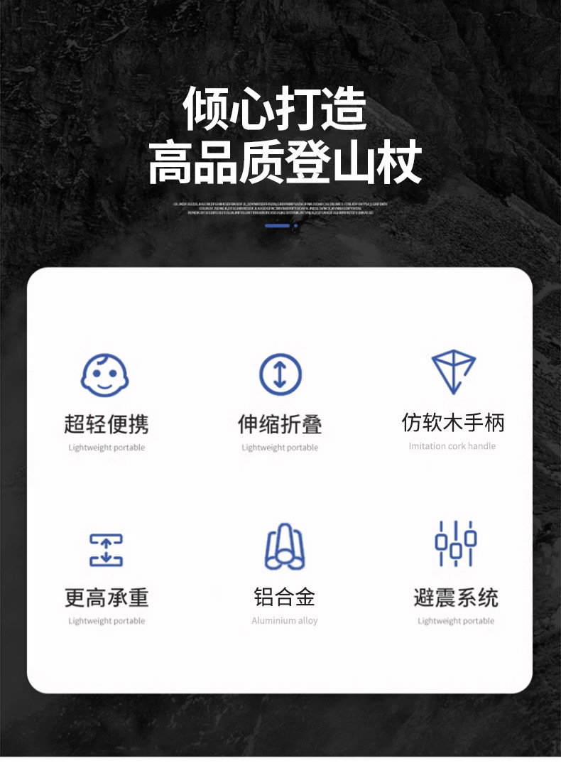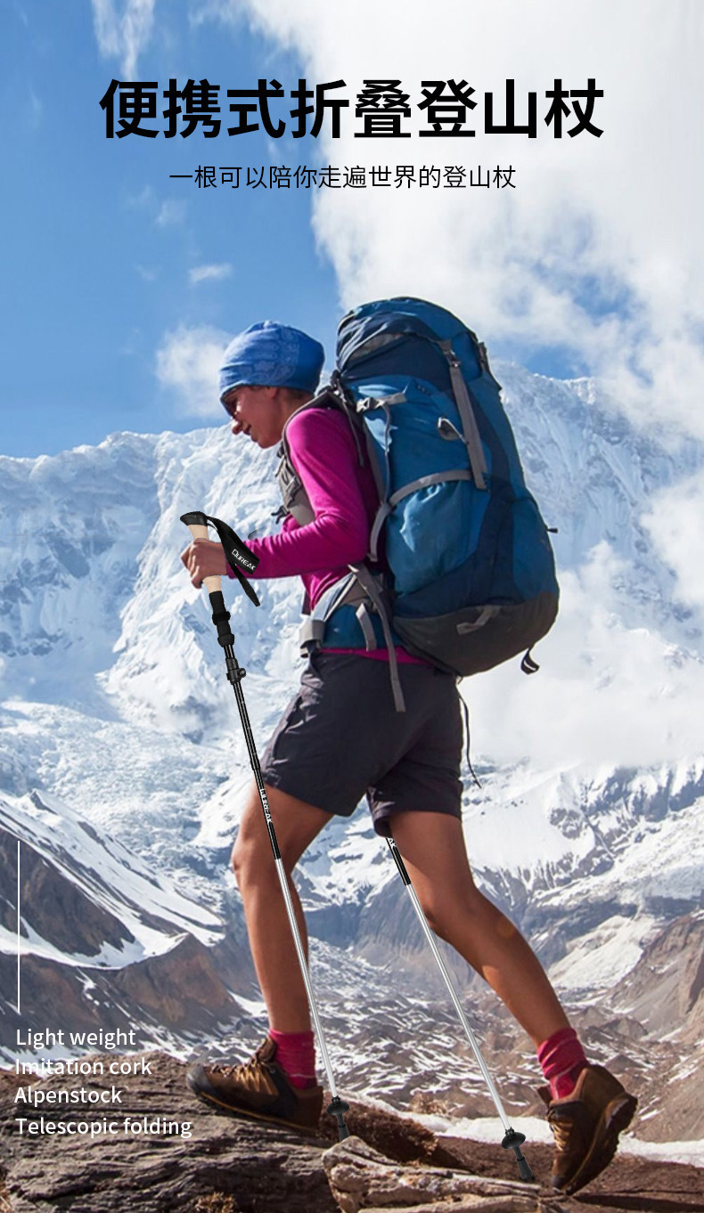 모조 코르크 손잡이 트레킹 스틱, 알루미늄 합금 트레킹 스틱, 초경량 텔레스코픽 야외 트레킹 스틱, 트레킹 스틱