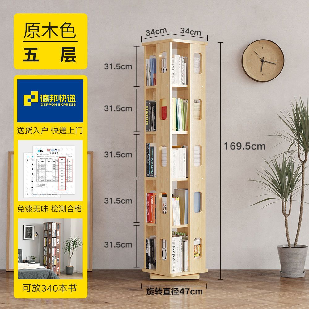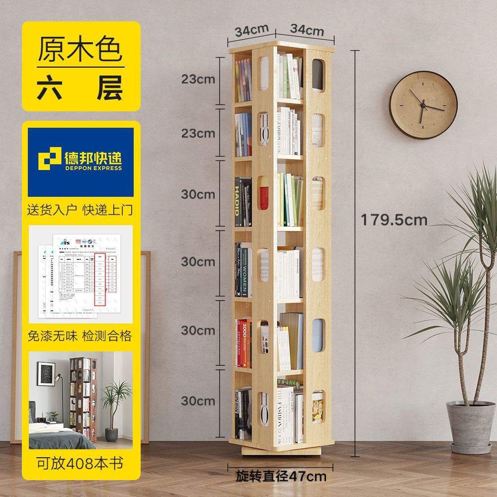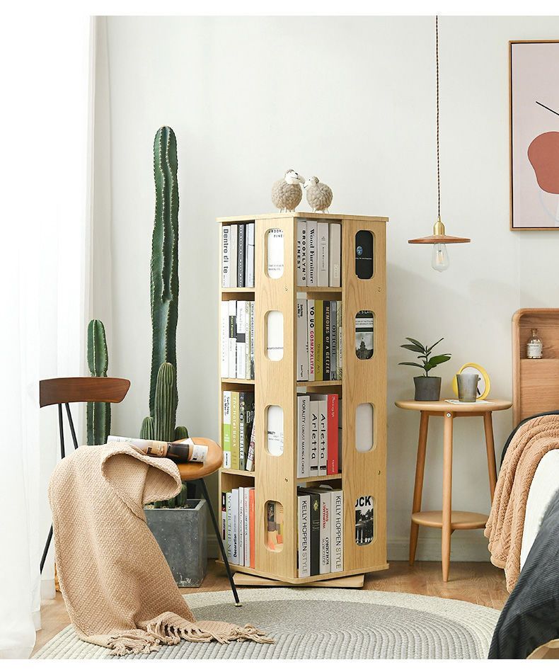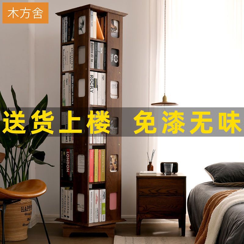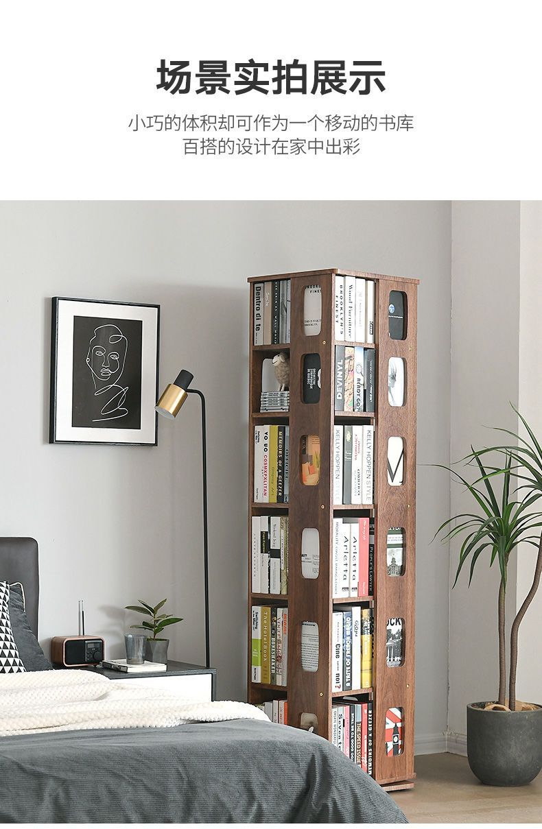 단단한 나무 회전 책장 360도 바닥에서 천장까지 이어지는 책장 간단한 현대 어린이 홈 스토리지 랙 학생 책장스토어 가기