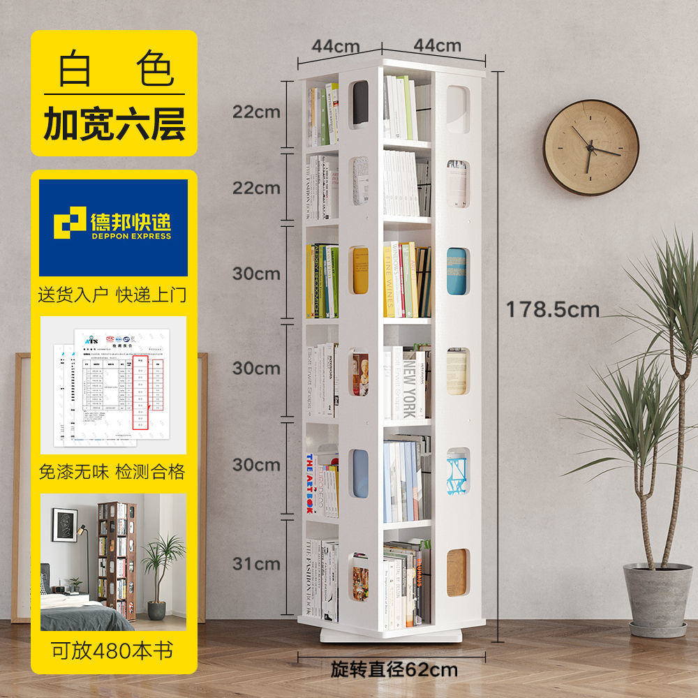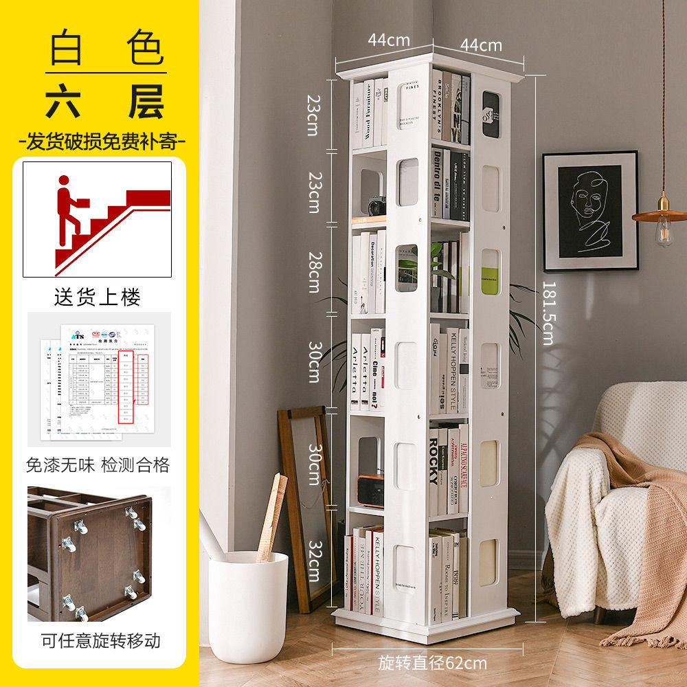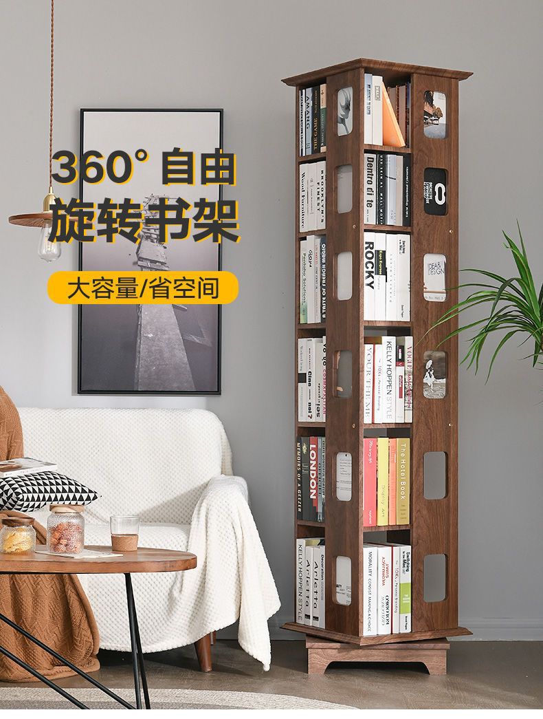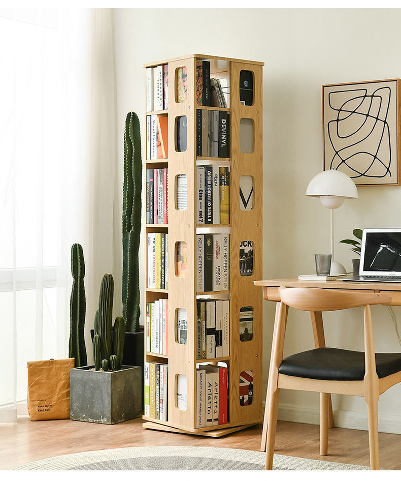 단단한 나무 회전 책장 360도 바닥에서 천장까지 이어지는 책장 간단한 현대 어린이 홈 스토리지 랙 학생 책장스토어 가기