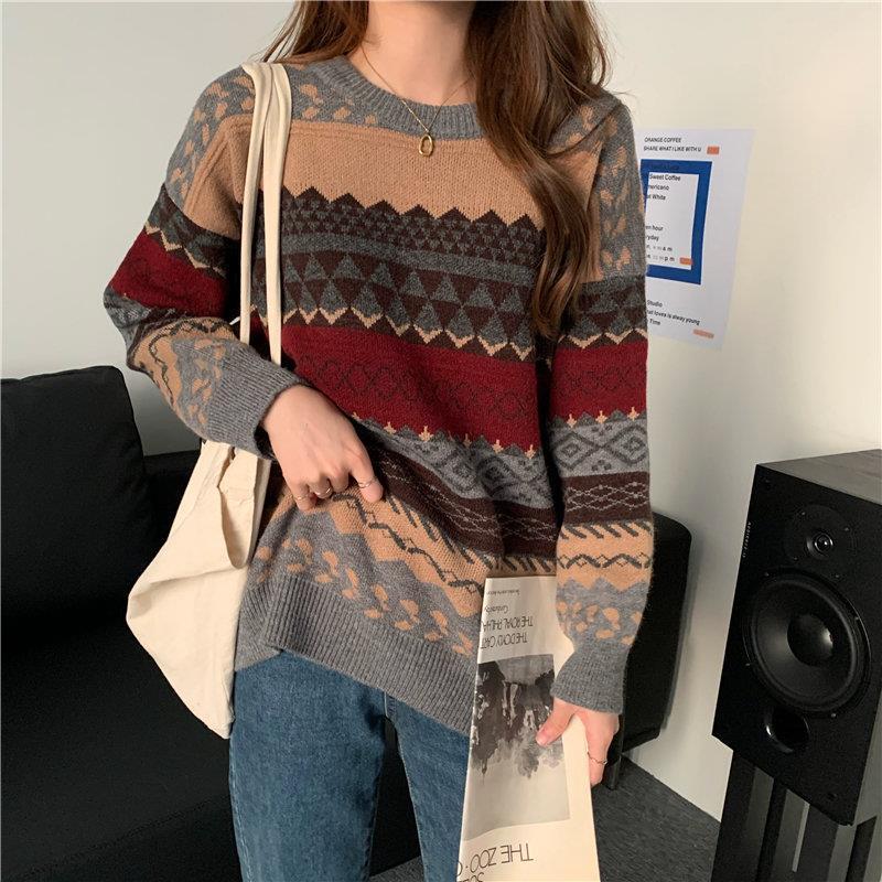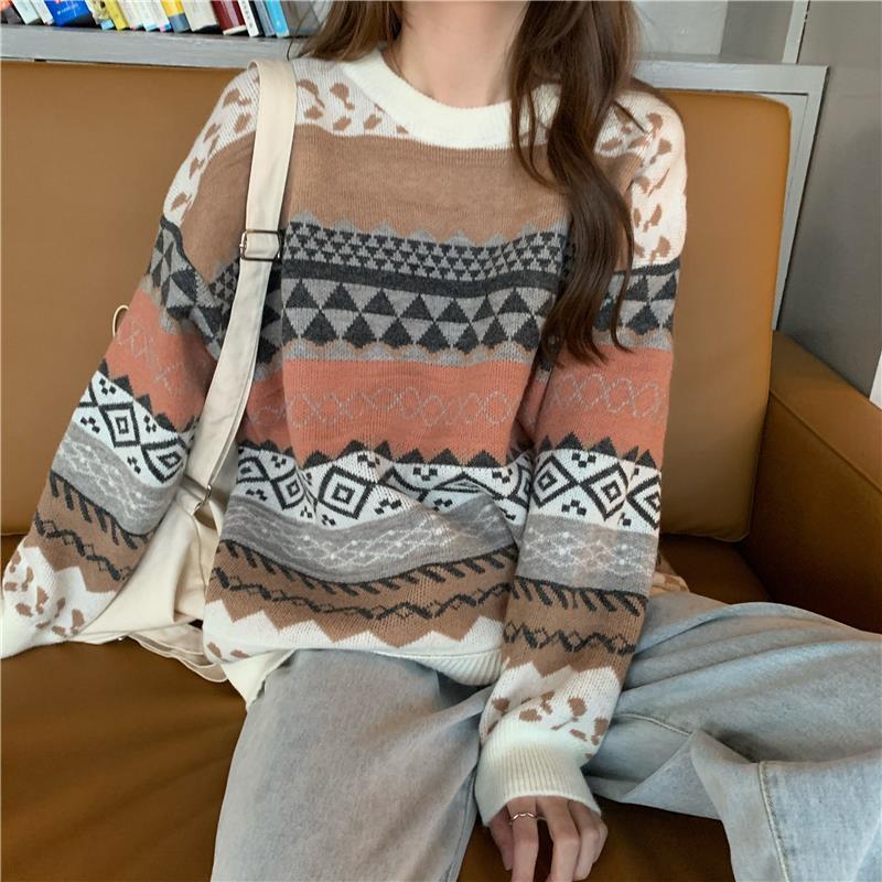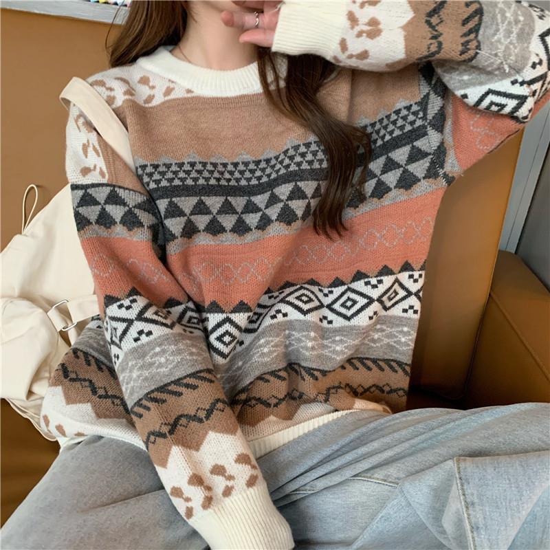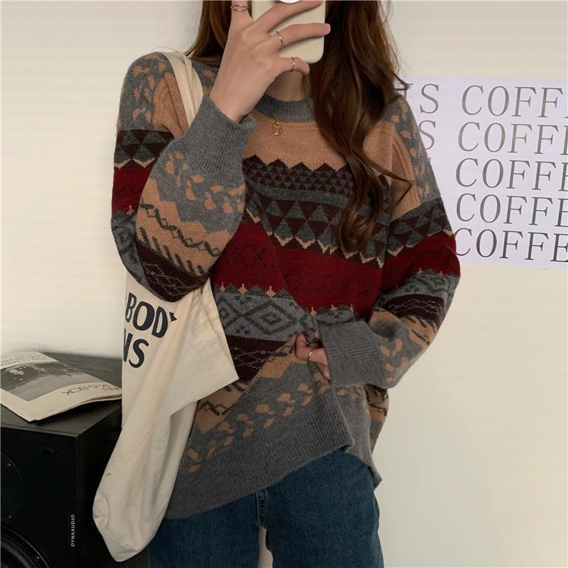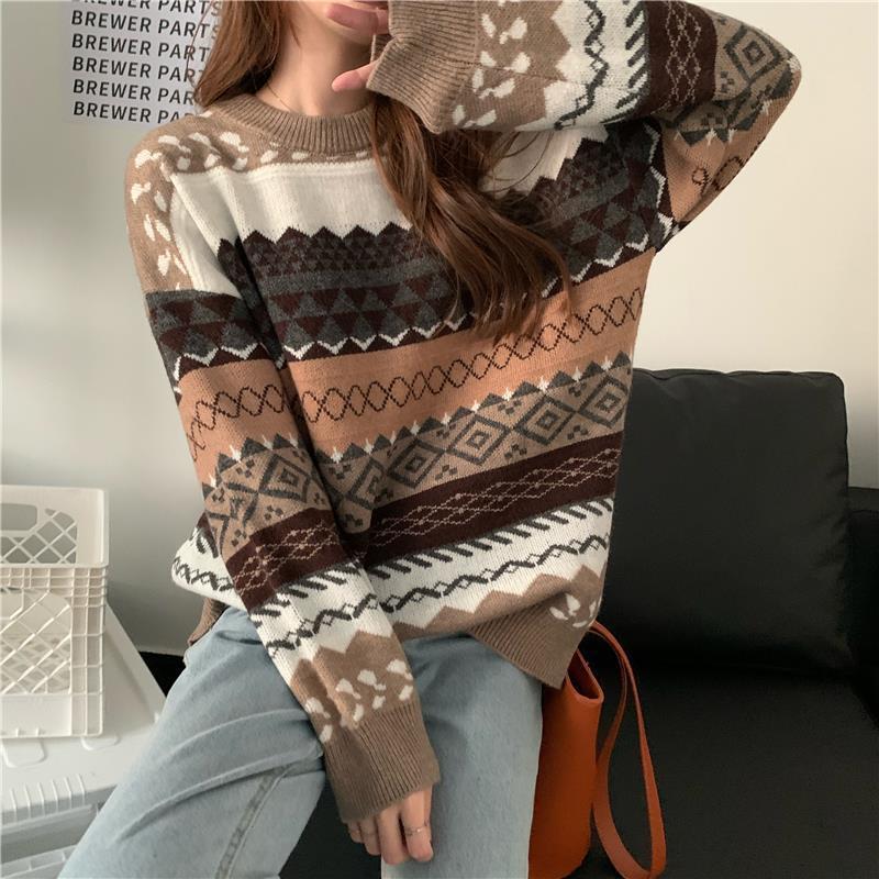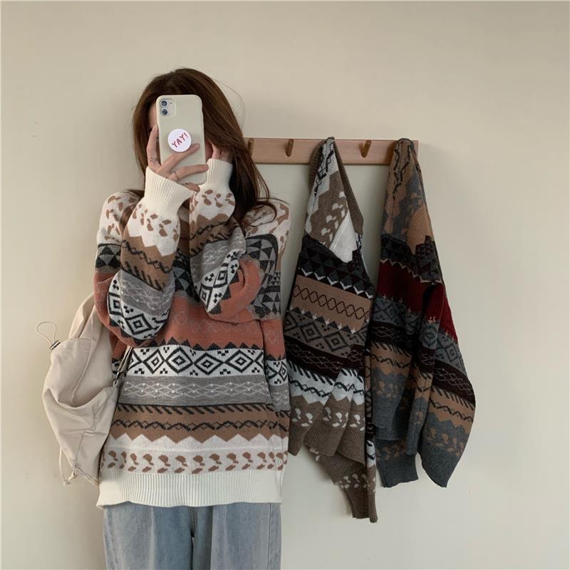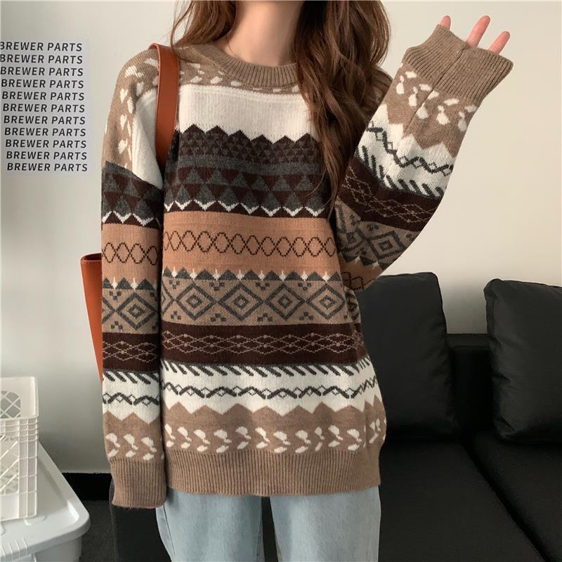 2025년 가을 겨울 여성을 위한 부드럽고 밀랍 같은 스웨터 새로운 복고풍 일본식 게으른 스타일 느슨한 겉옷 두꺼운 풀오버 스웨터스토어 가기