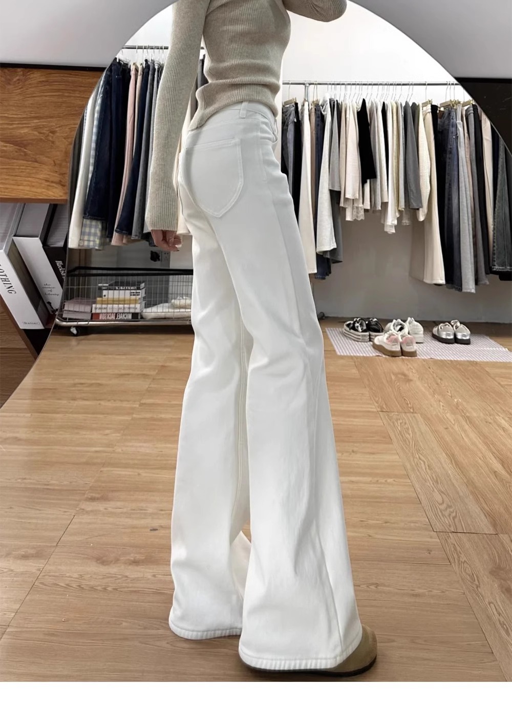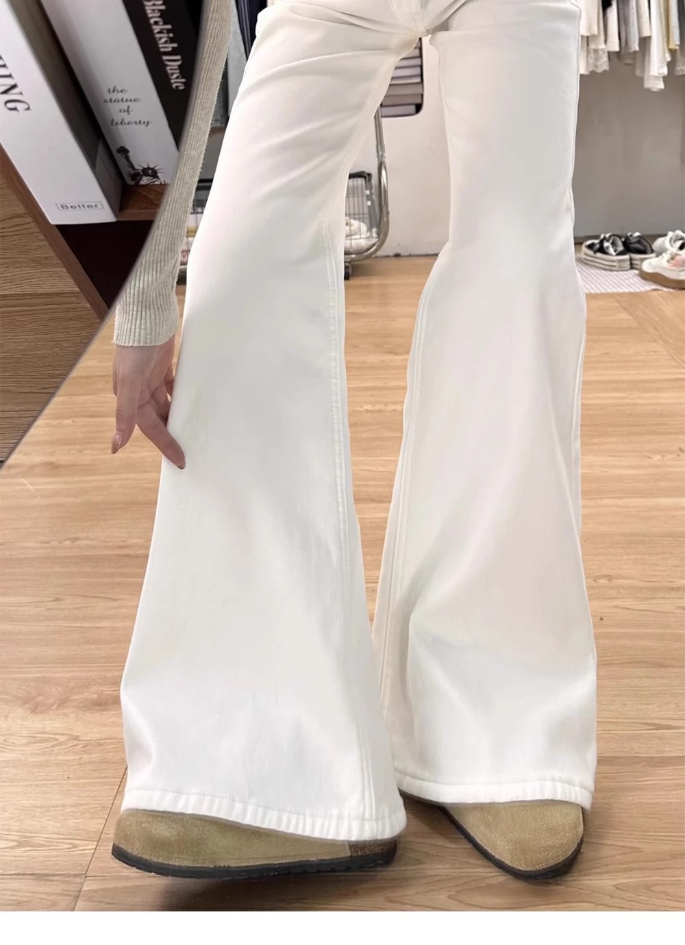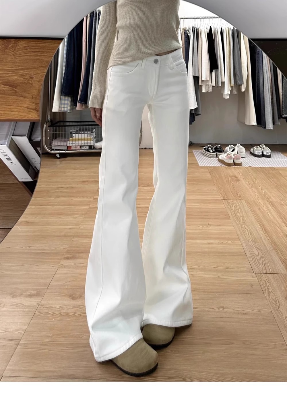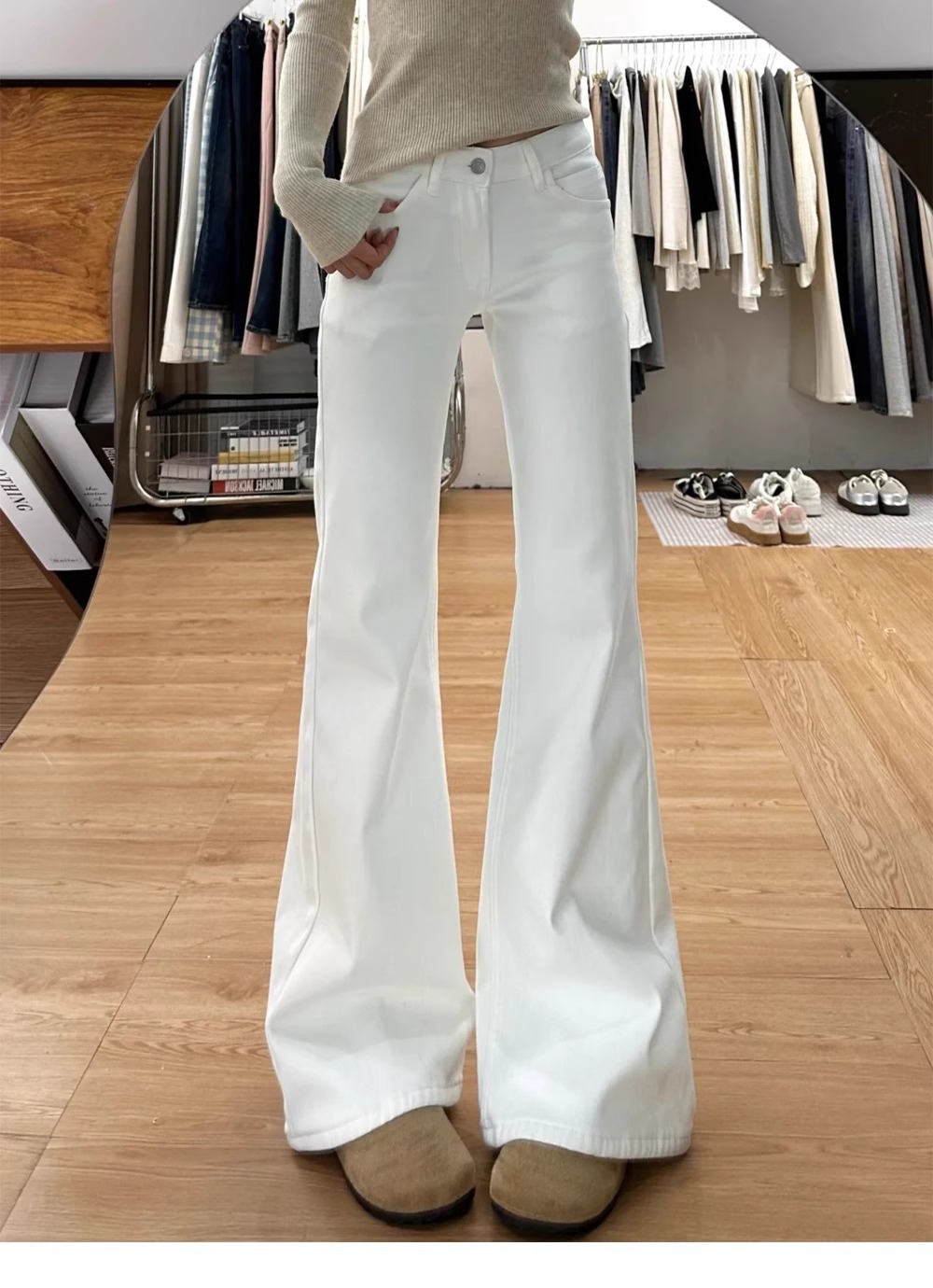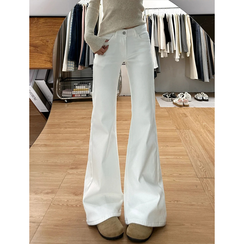 가을용 화이트 부츠컷 청바지 여성용 슬림핏 레깅스 아닌 스트레이트 부츠컷 팬츠 여성용 하이웨이스트 루즈핏 팬츠 여성용 가을