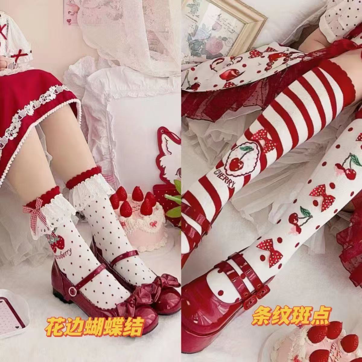 여름 일본식 중간 길이의 달콤한 양말, 종아리 중간에 속이 빈 얇은 양말, 여성용 레이스 소녀 리본 양말