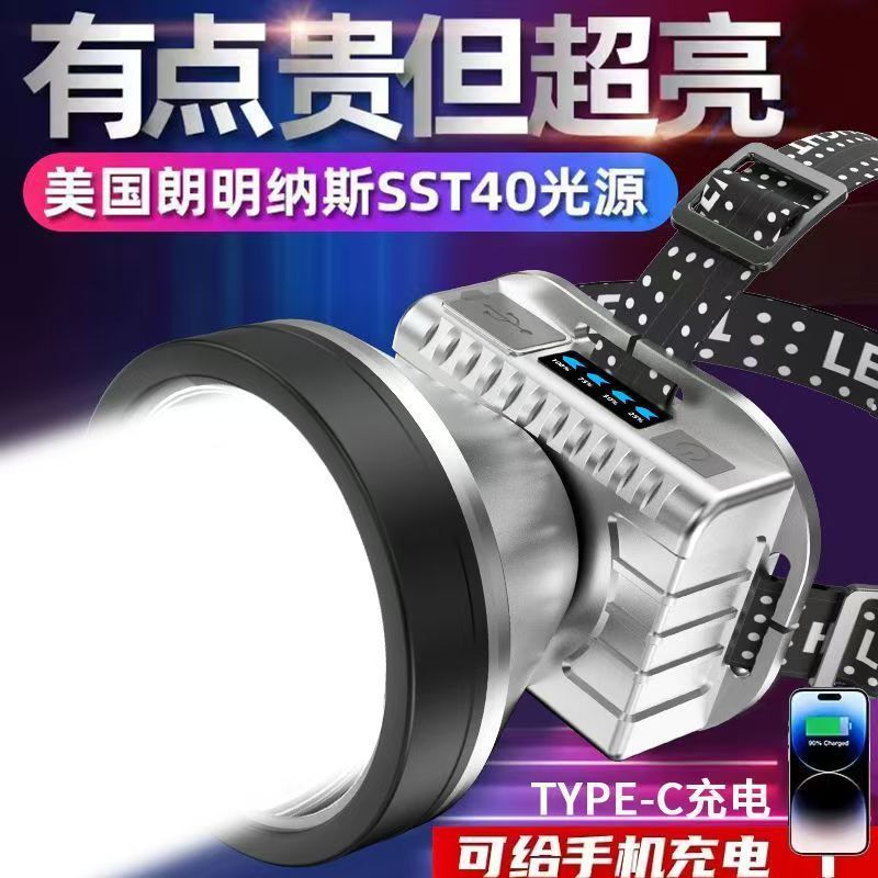 야외 헤드 장착형 강한 빛 헤드 라이트, 매우 밝고 장거리 충전식 방수, 매우 긴 광부 램프, 긴 수명 손전등, 무료 배송스토어 가기