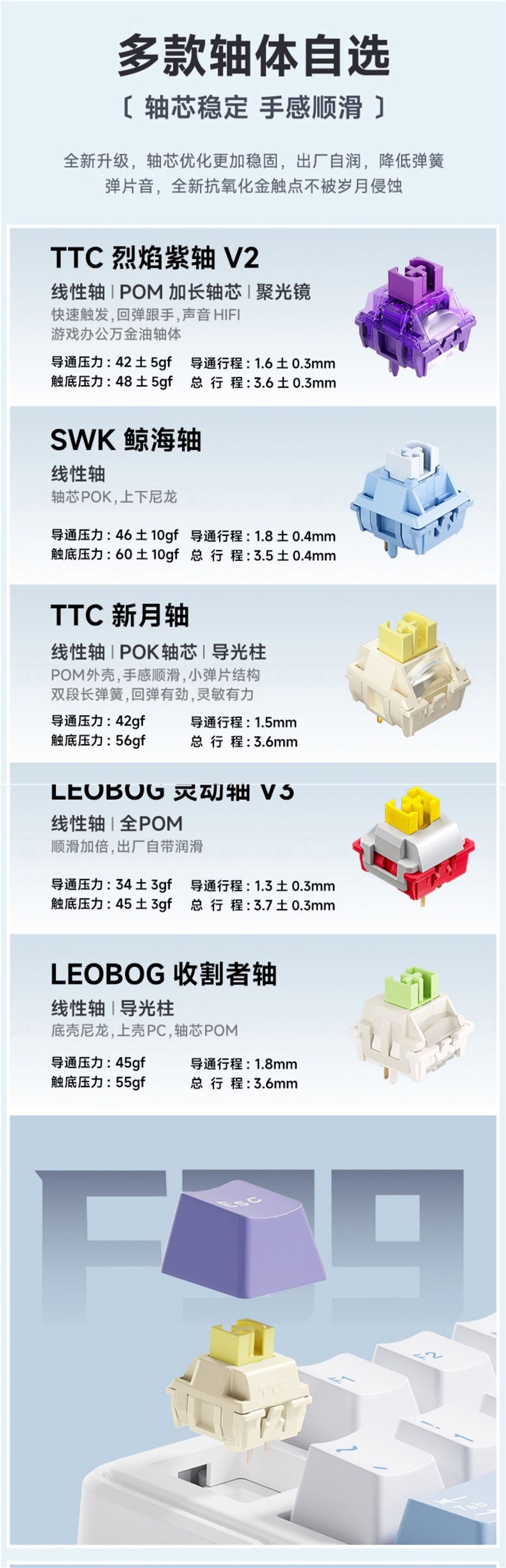 • F99 Pro 오로라 아이스 블루-플레임 퍼플 축 V2