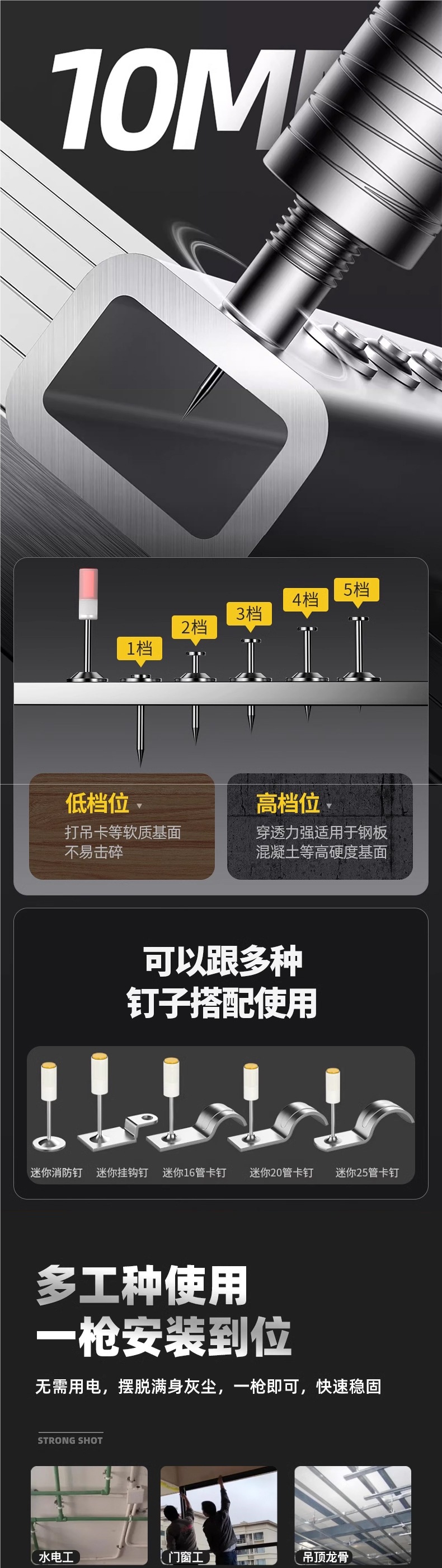 미니 총못총, 소음기, 시멘트벽 콘크리트못총, 수동못총, 장식용 케이블 트레이 고정못총