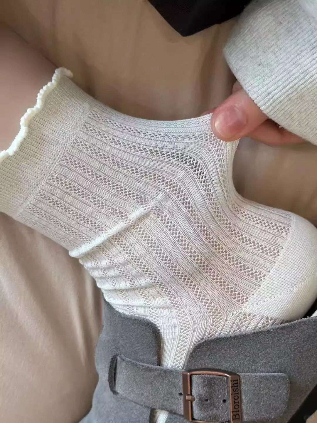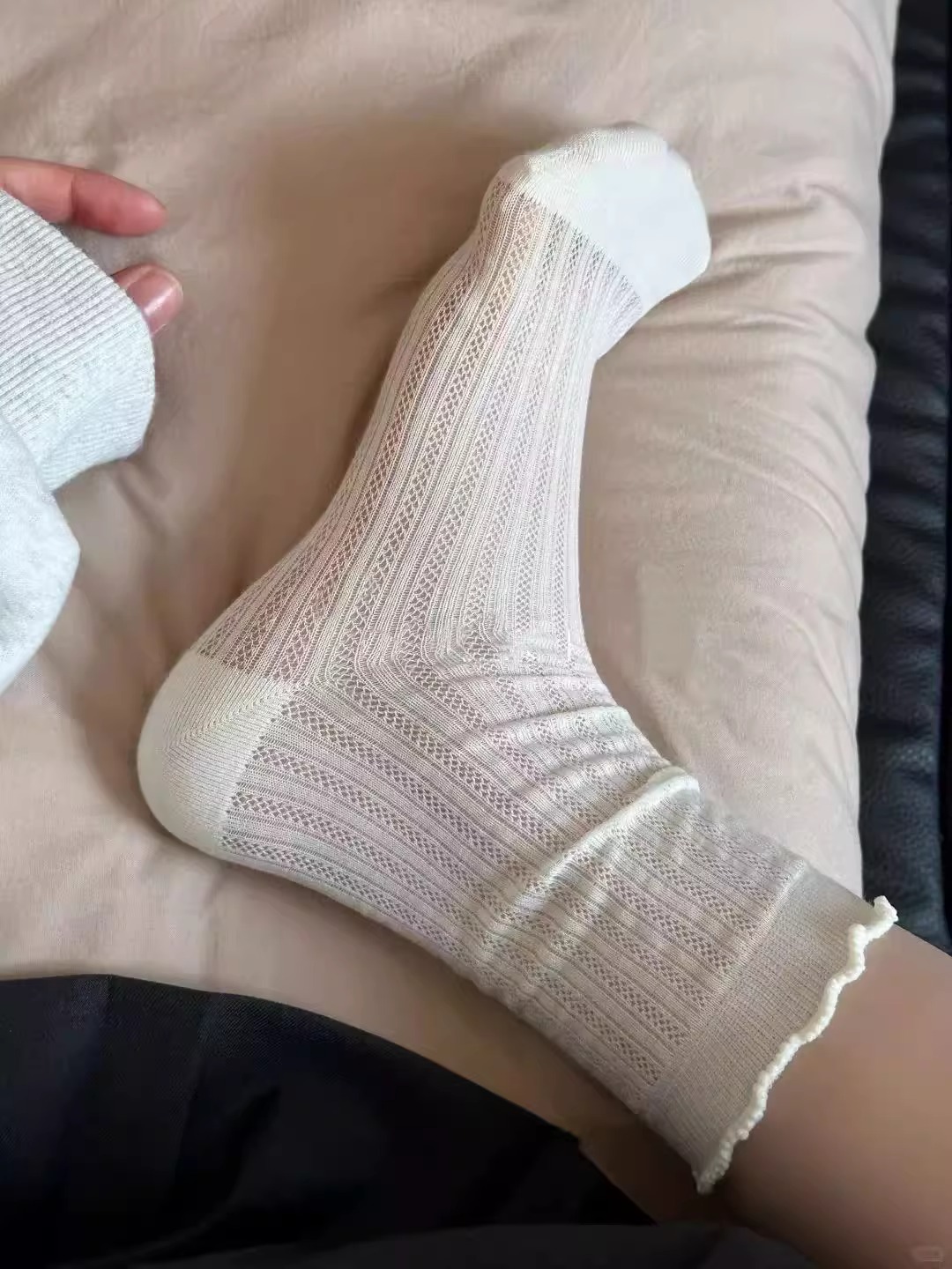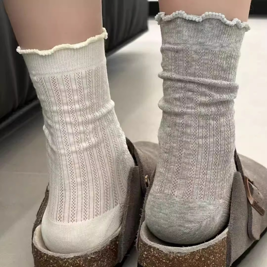 여성용 솔기가 있는 솔리드 컬러 메쉬 중공 양말, 트렌디한 순면 여름 얇은 발레 스타일 여성용 스타킹스토어 가기