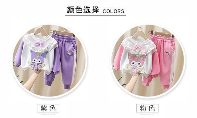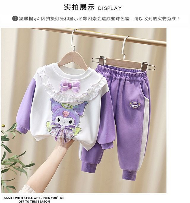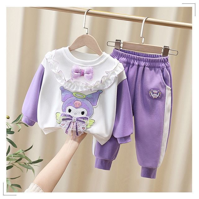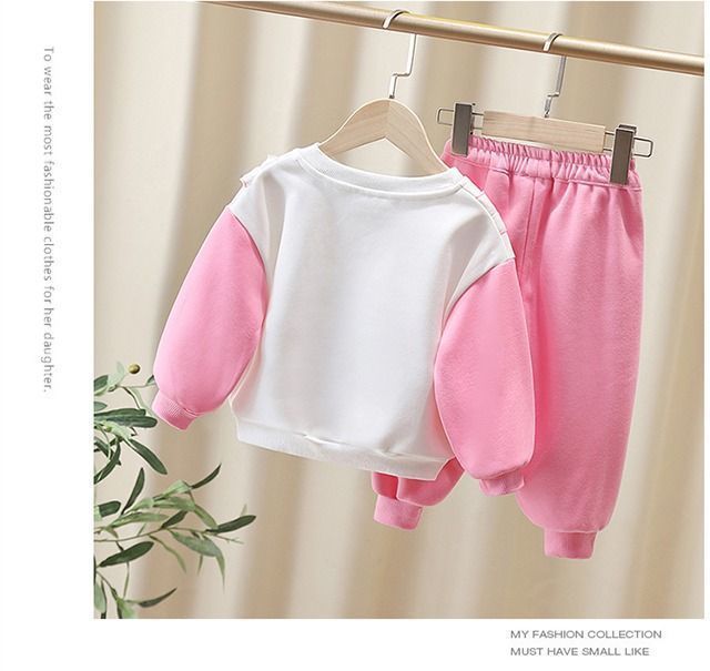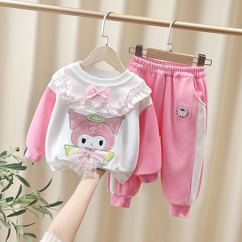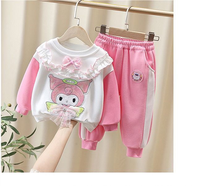 여자 봄, 가을 만화 운동복 세트 2025 새로운 아기 투피스 세트 외국 스타일 아기 유행 아동 의류 캐주얼스토어 가기