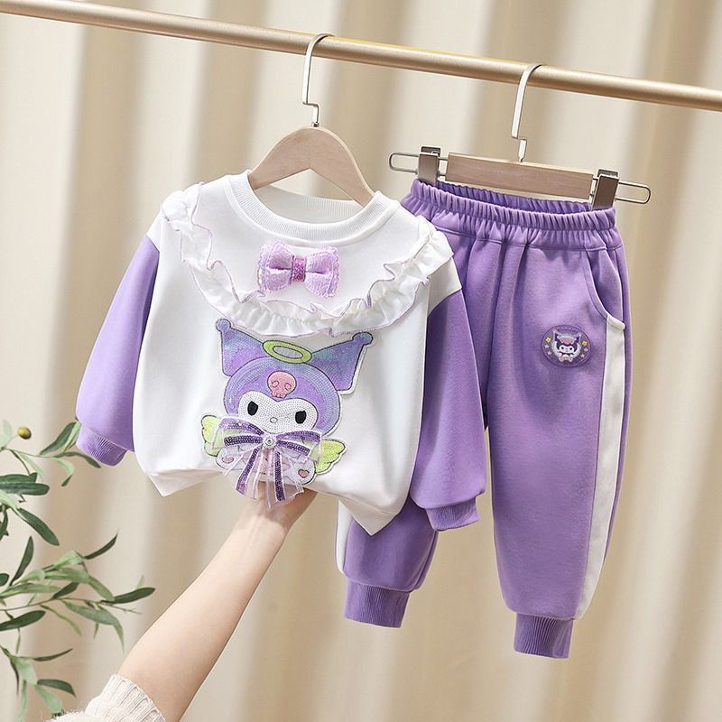 여자 봄, 가을 만화 운동복 세트 2025 새로운 아기 투피스 세트 외국 스타일 아기 유행 아동 의류 캐주얼