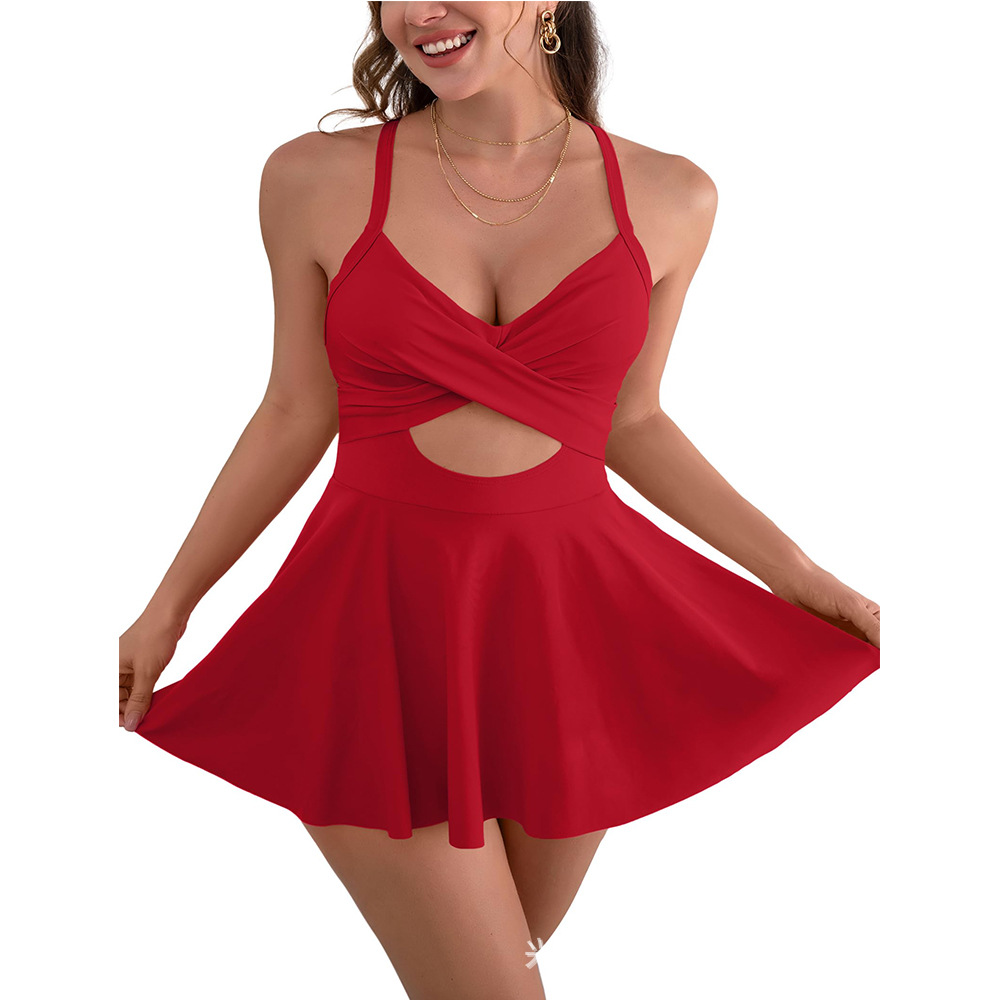 유럽과 미국의 여름 새로운 섹시한 여성 l 중공 트위스트 가방 슬링 비키니 가슴 패드 스커트 원피스 수영복