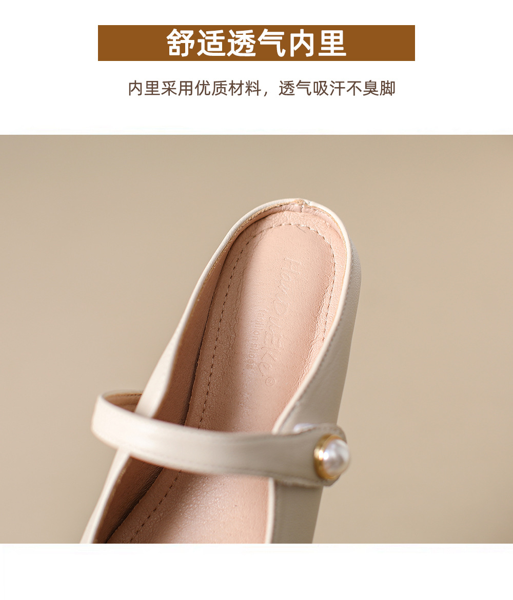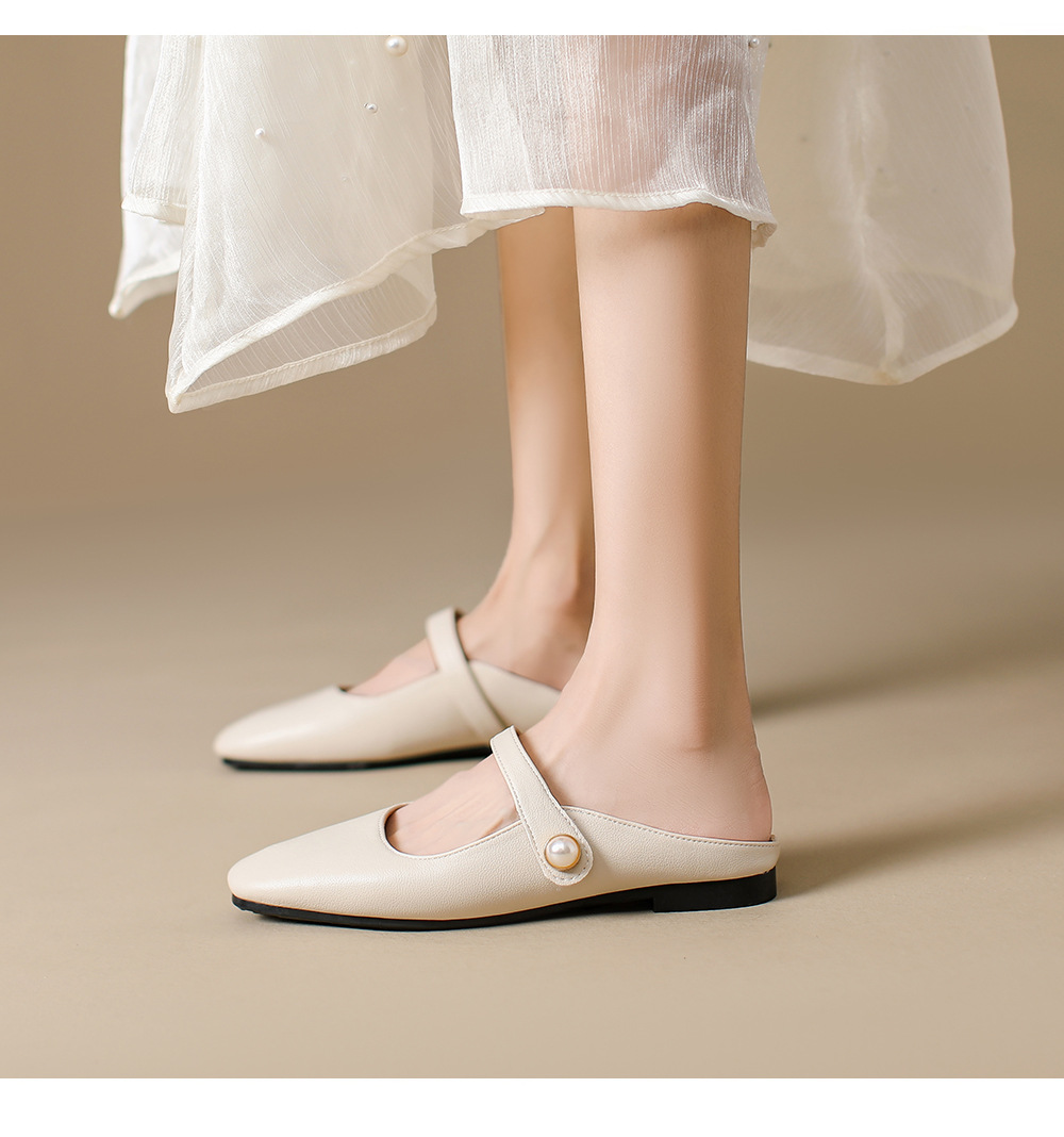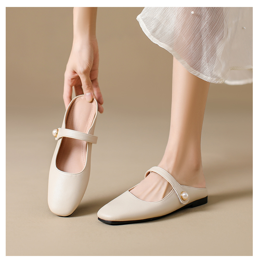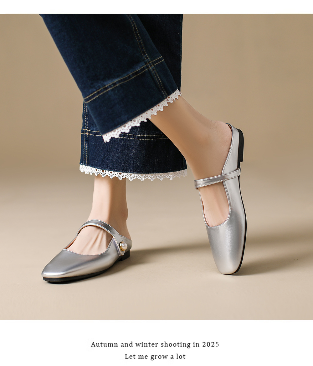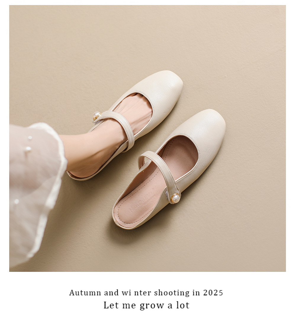 S-11 신상 2025 봄, 가을, 여름 기질 작은 가죽 신발 여성 신발 스퀘어 토 얕은 입 버클 신발 여성용 하프 슬립 신발스토어 가기