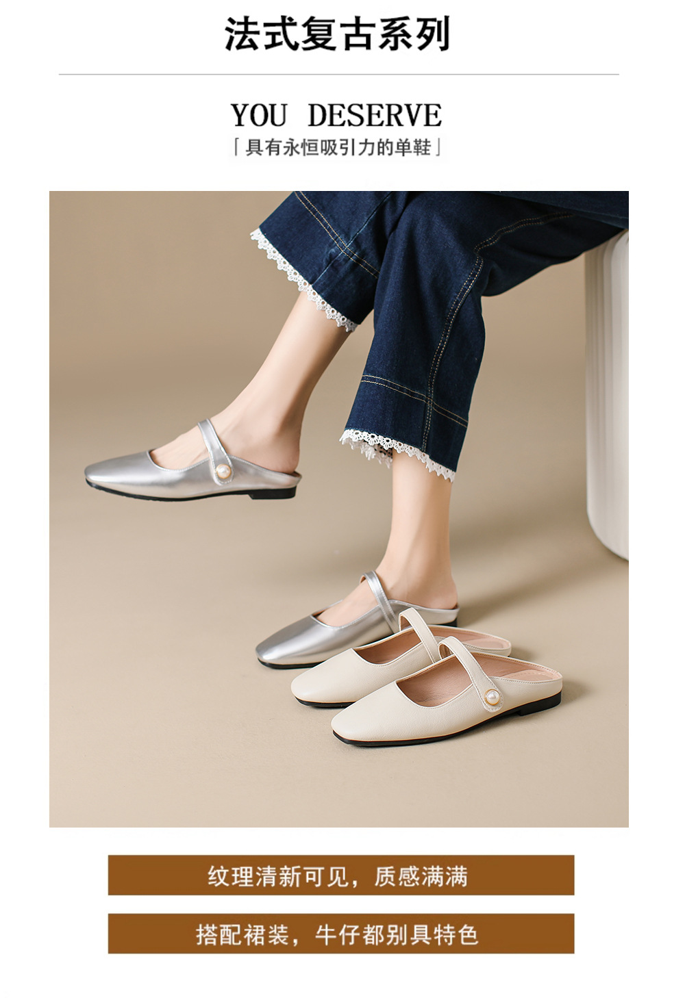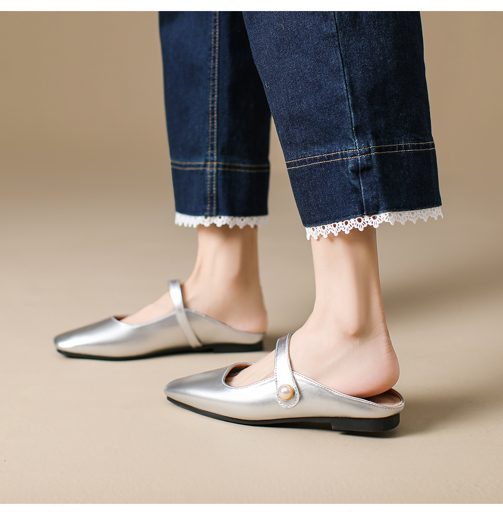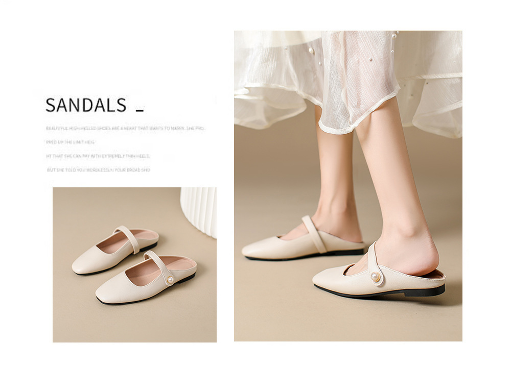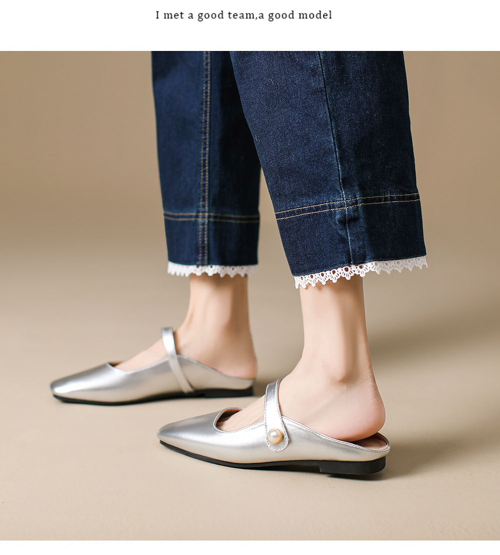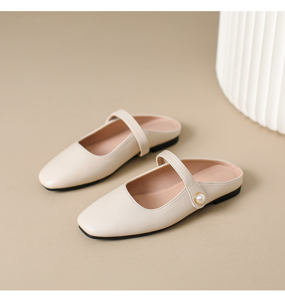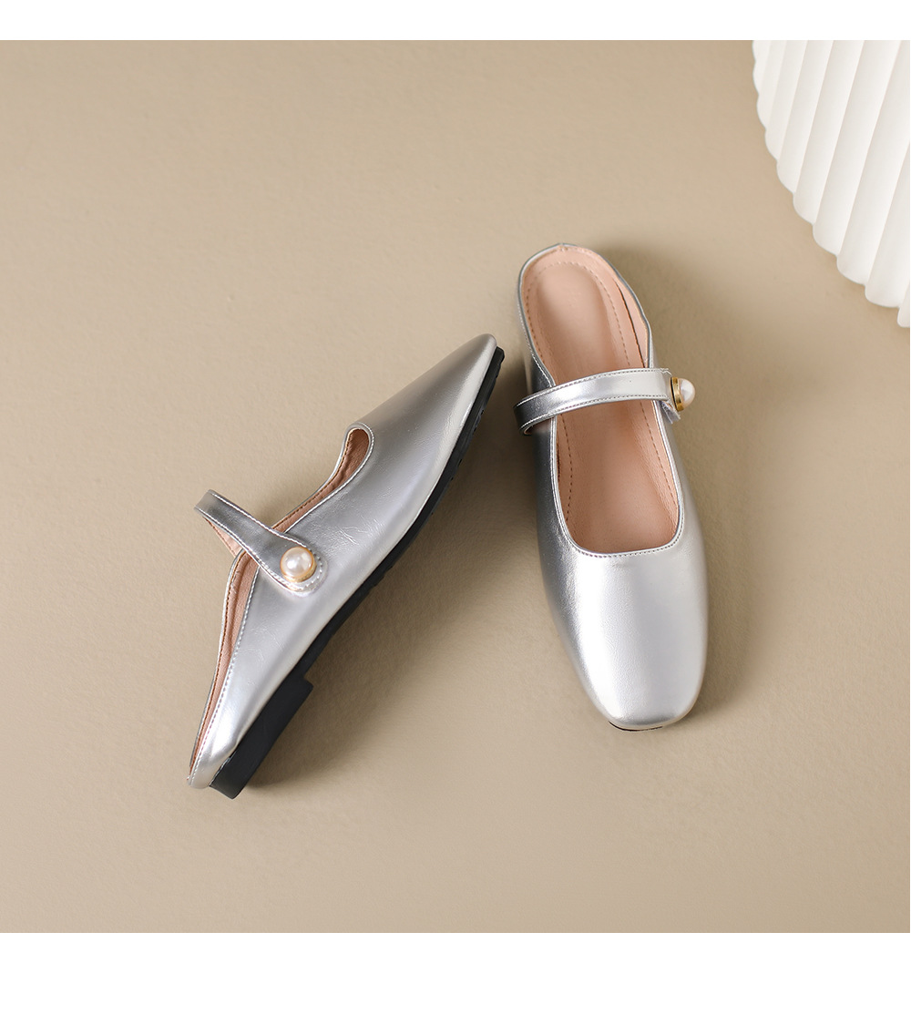 S-11 신상 2025 봄, 가을, 여름 기질 작은 가죽 신발 여성 신발 스퀘어 토 얕은 입 버클 신발 여성용 하프 슬립 신발스토어 가기