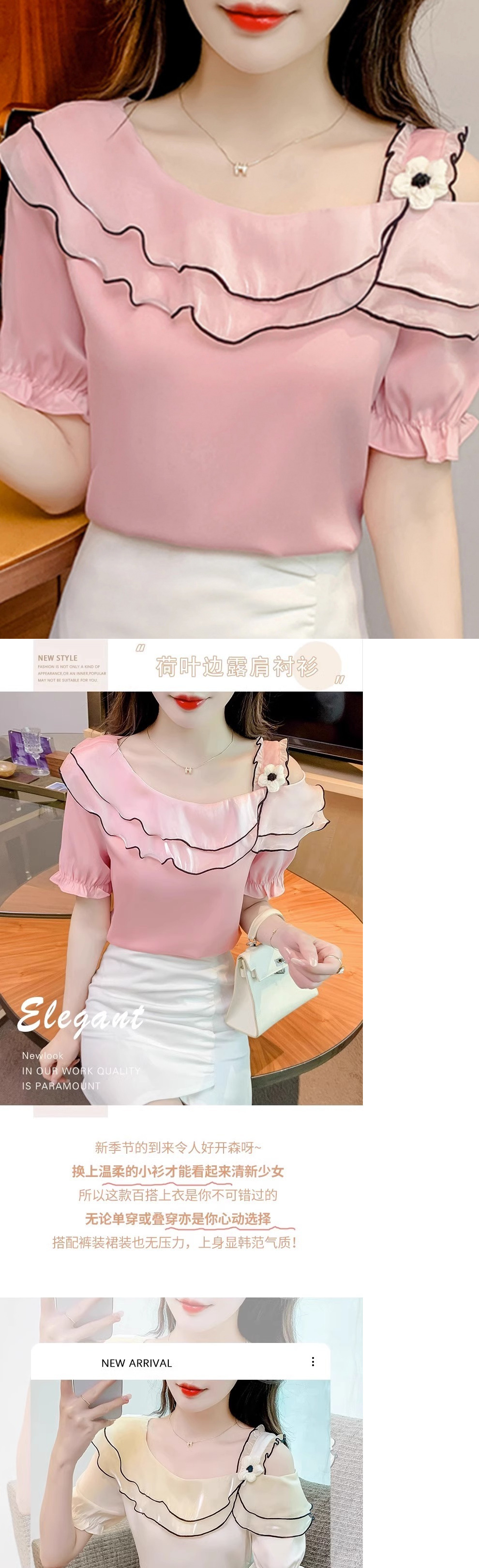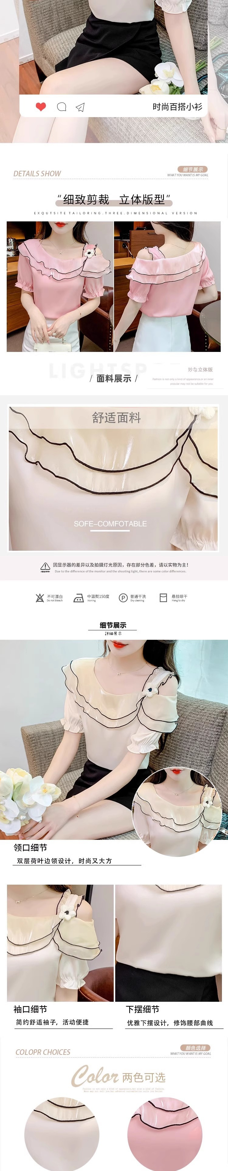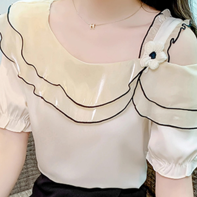 여성을위한 러플 반팔 오프 숄더 쉬폰 셔츠 2025 여름 새로운 스타일 프렌치 젠틀 스타일 탑 연령 감소 아름다운 셔츠스토어 가기