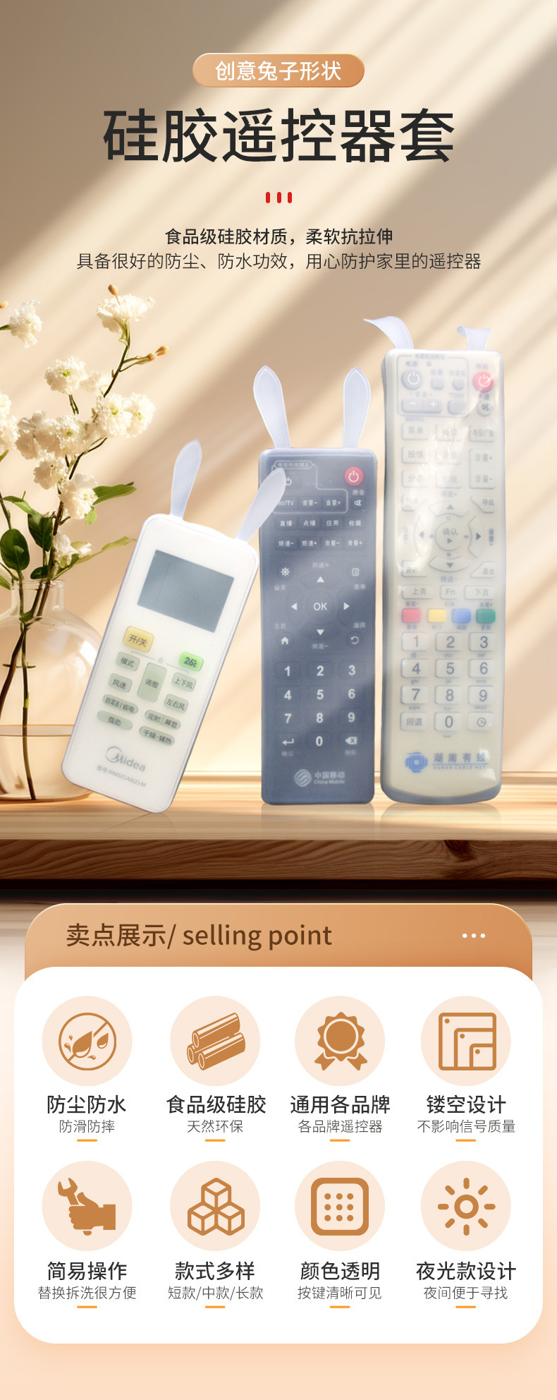 토끼 에어컨 TV 리모컨 커버 먼지 커버 투명 실리콘 크리 에이 티브 귀여운 리모컨 보호 커버 도매