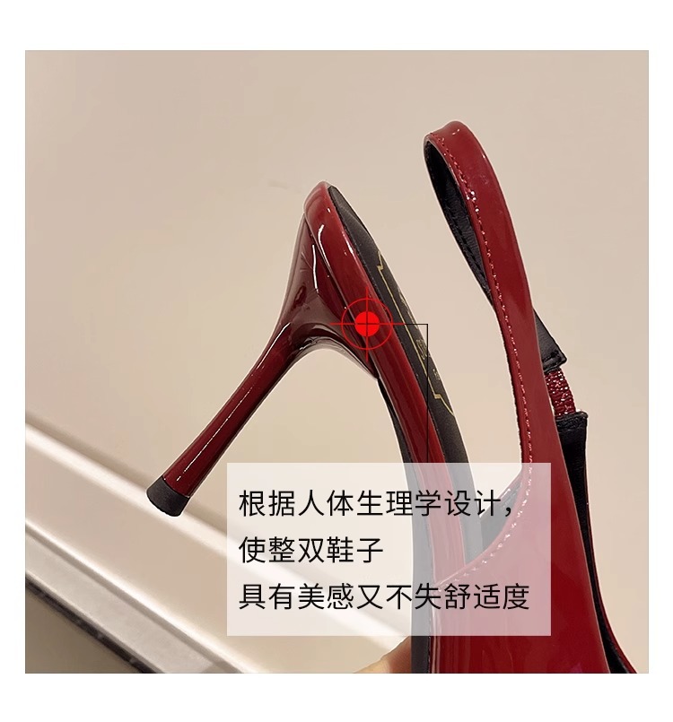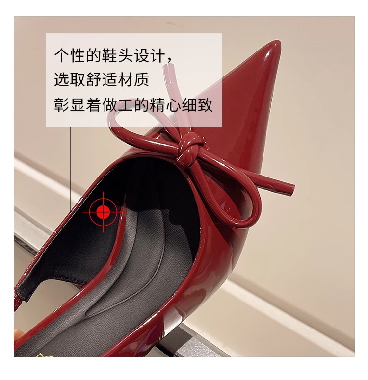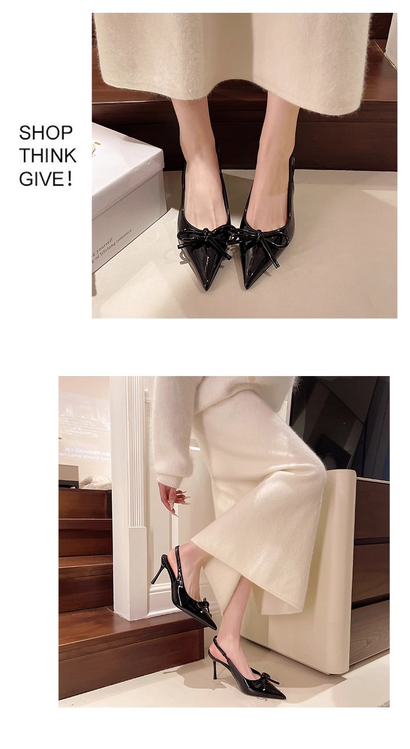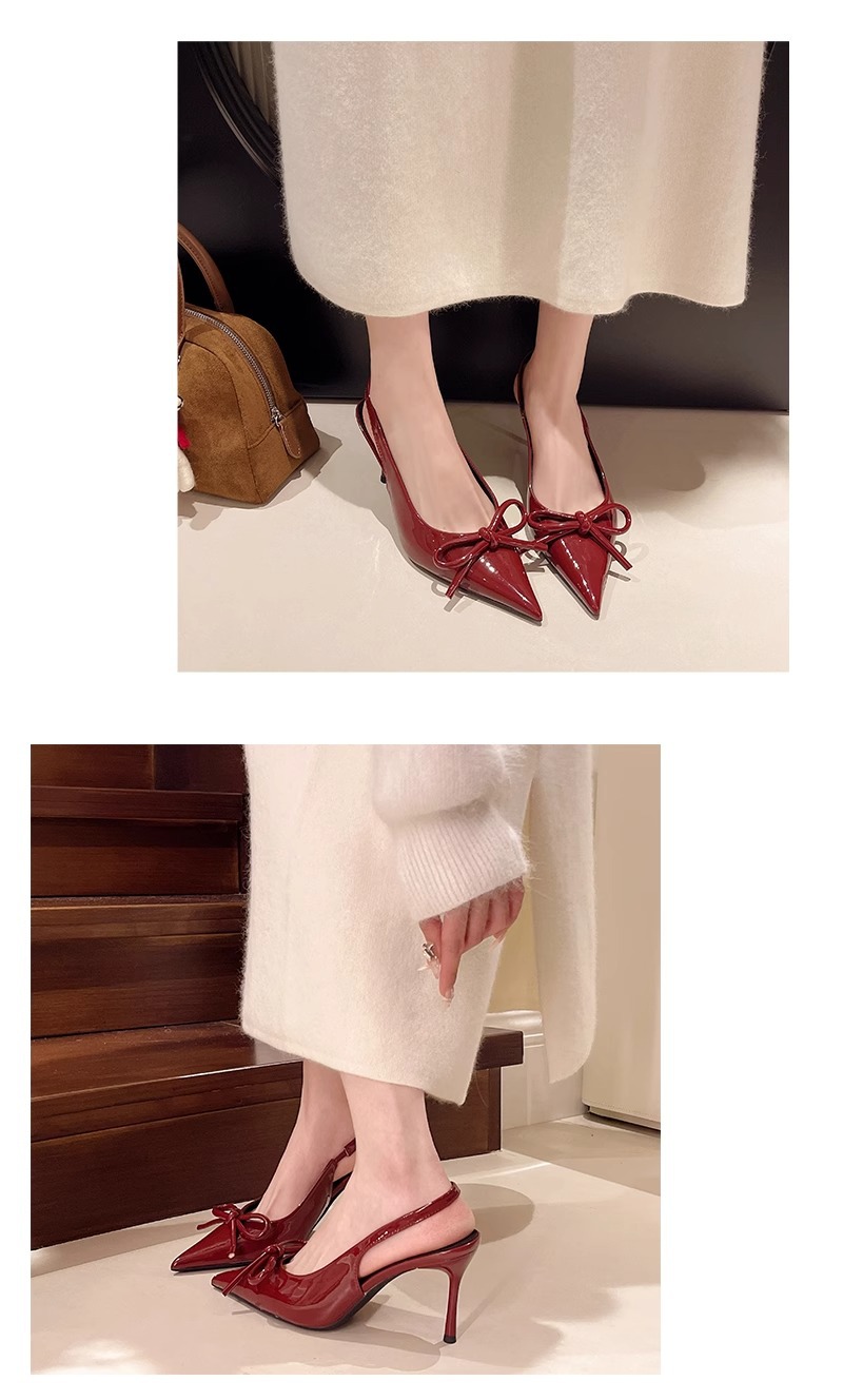 핑크 살구색 하이힐 여성 프렌치 토캡 샌들 2025 신상 여름 기질 포인티드 토 보우 싱글 슈즈스토어 가기
