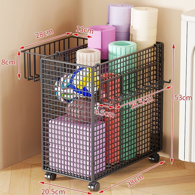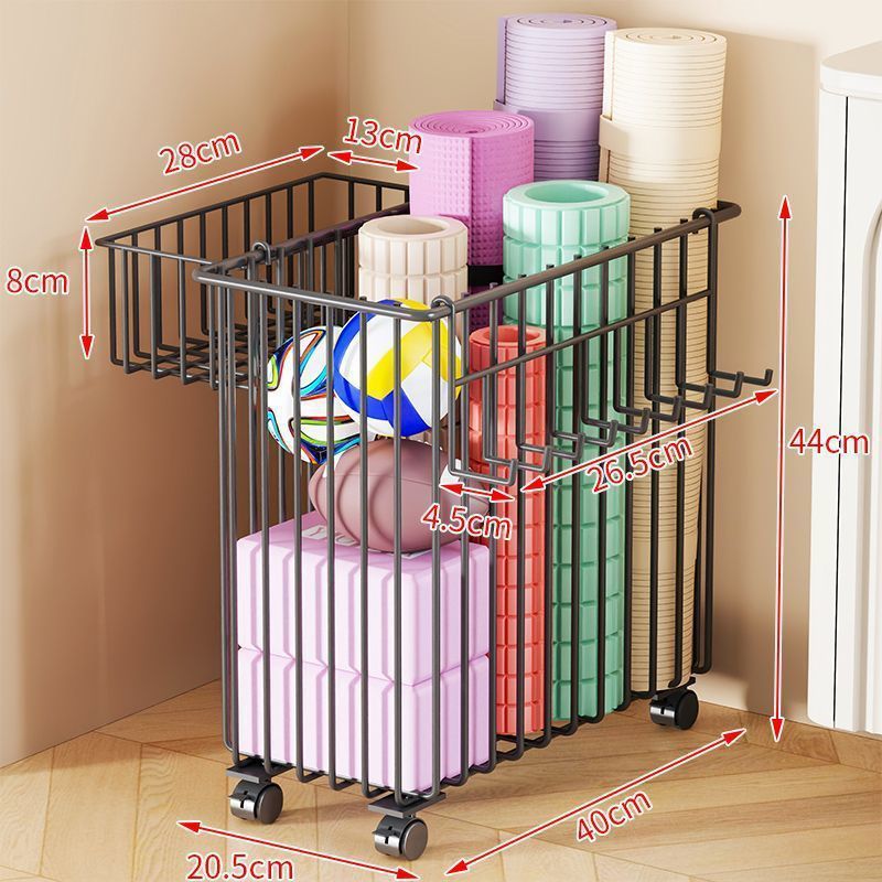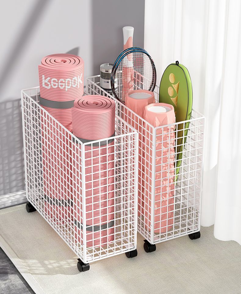 바퀴가 달린 요가 매트 보관 바구니, 피트니스 기구 보관 랙, 배드민턴 라켓 보관통, 폼 롤러, 가정용 바구니, 새 제품스토어 가기