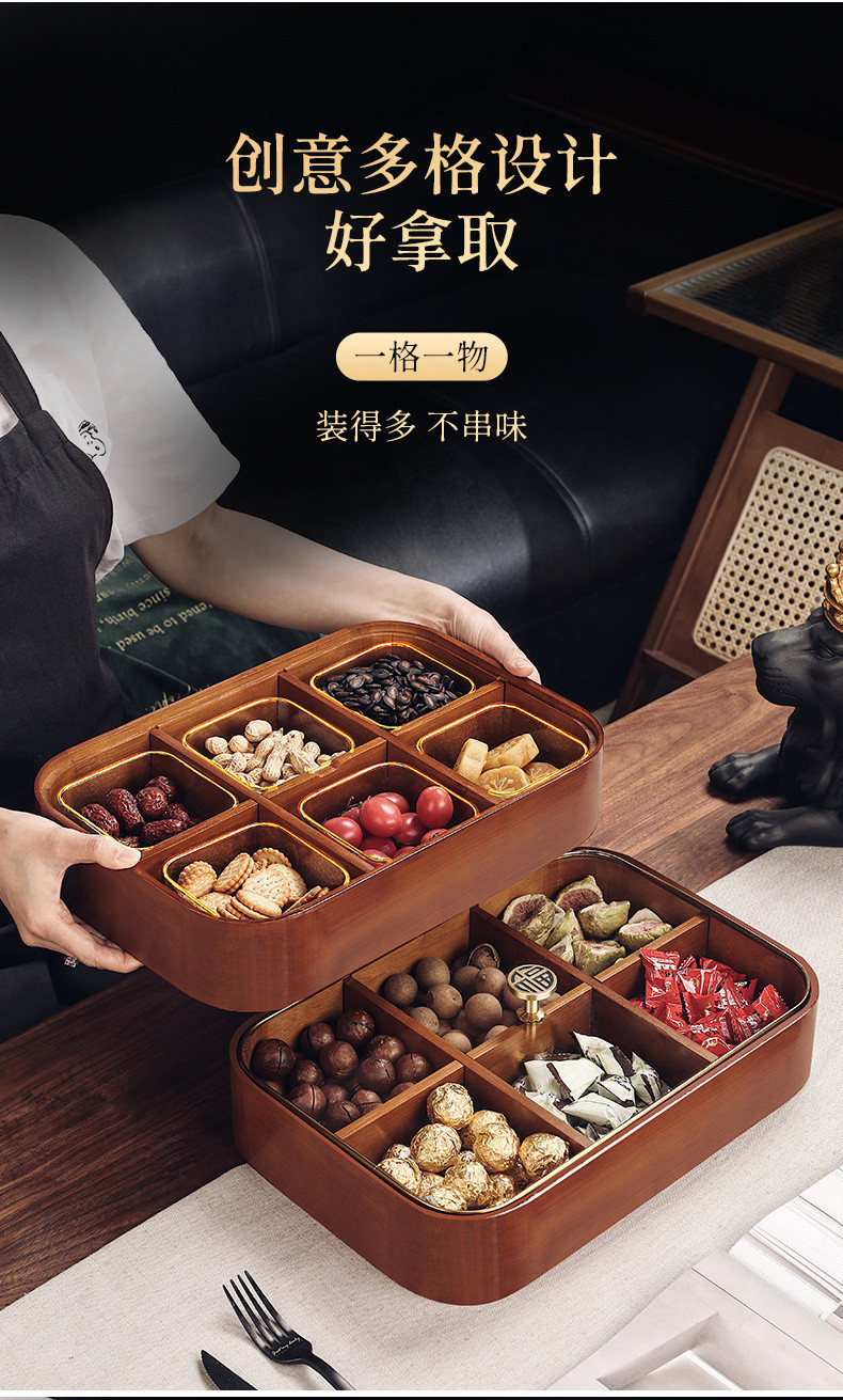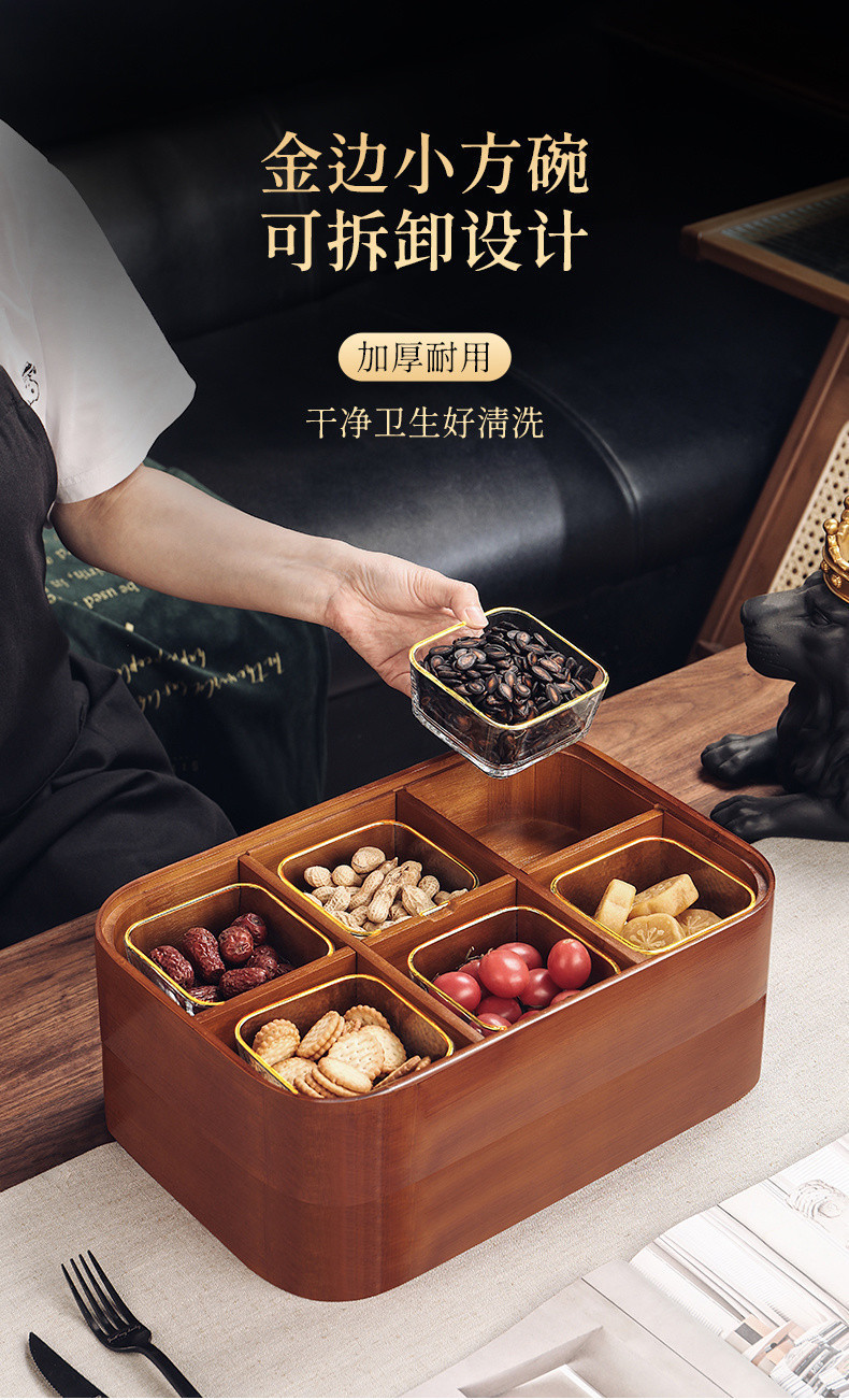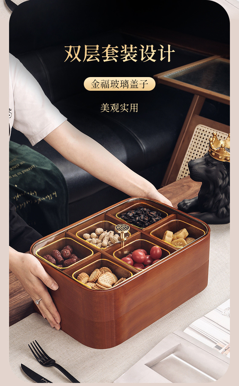 새로운 중국 스타일 단단한 나무 거실 가정용 말린 과일 보관 상자 멜론 씨앗 사탕 커피 테이블 견과류 스낵 디스플레이 차 과일 접시