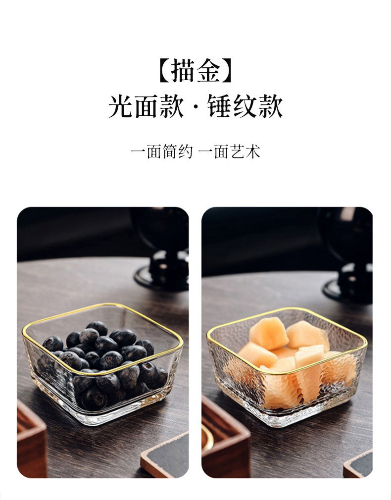 • 4개의 그리드 둥근 모서리 단일 레이어 + 금색 가장자리가 있는 투명 그릇 2개