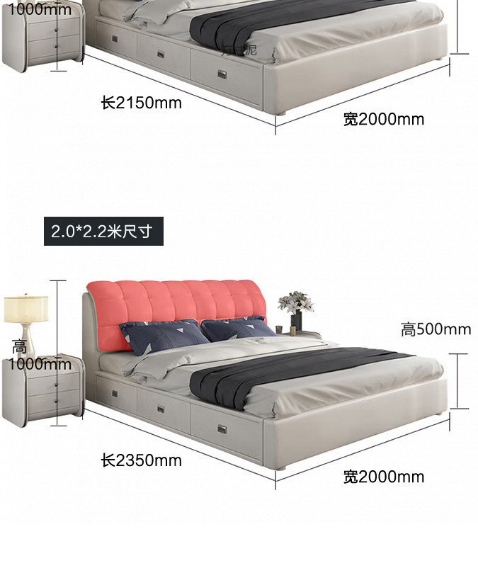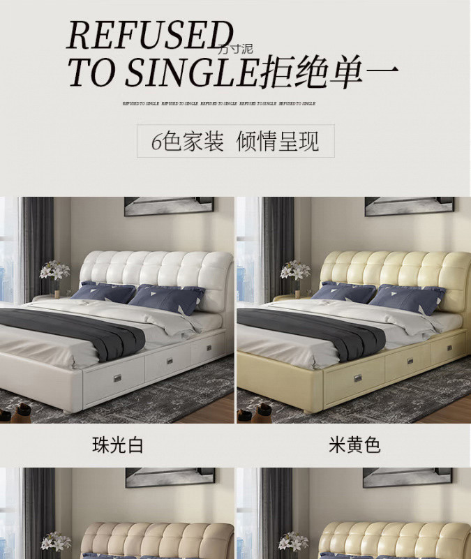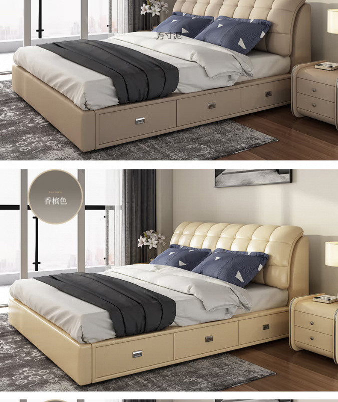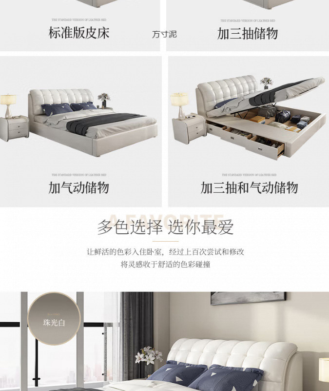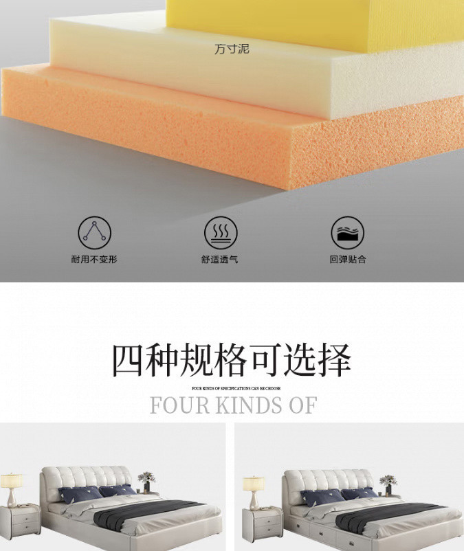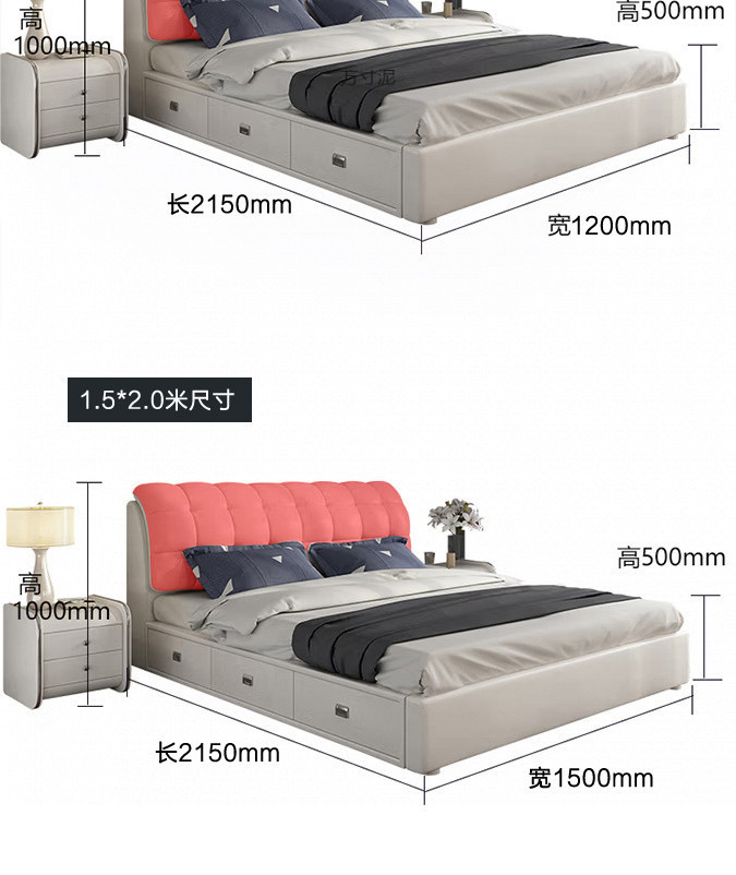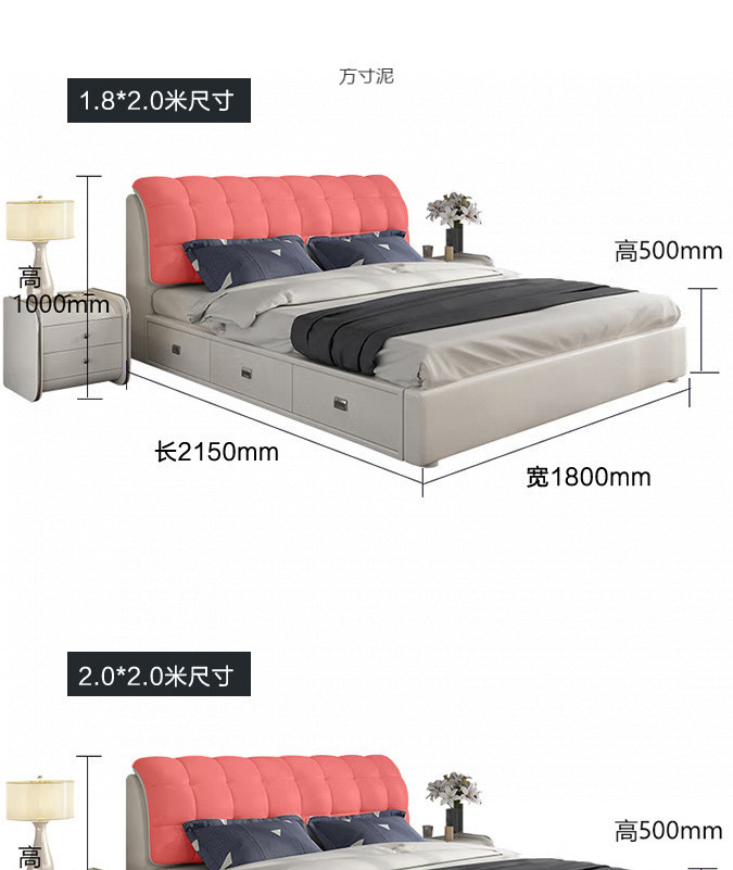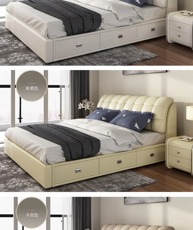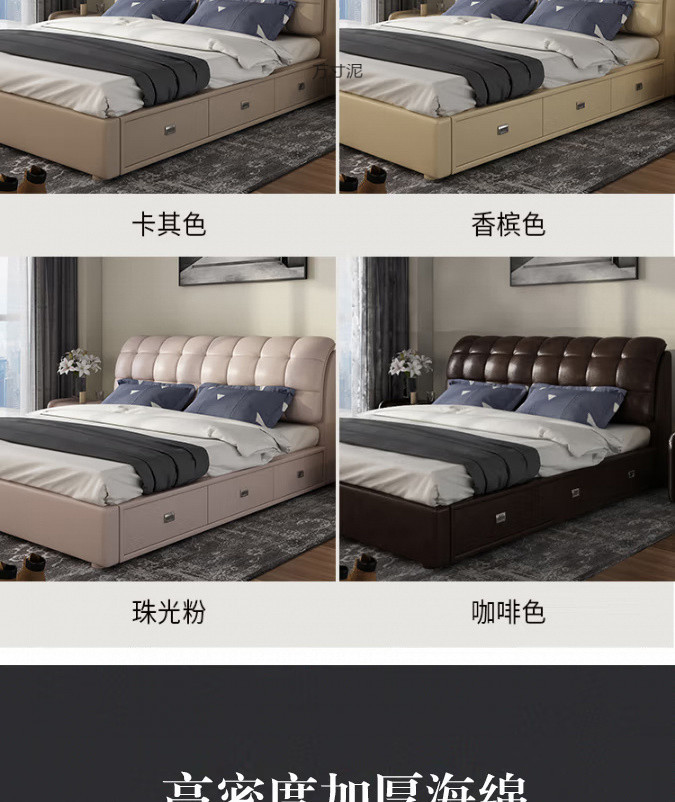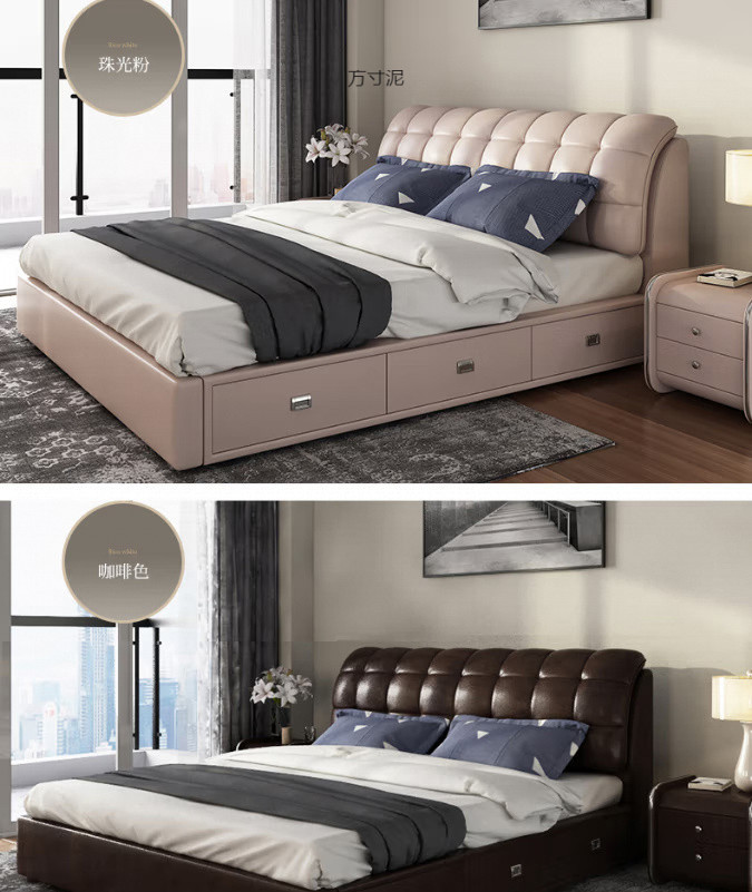 가죽 침대 가죽 침대 1.8m 더블 침대 마스터 침실 다다미 침대 1.5m 어린이 침대 웨딩 침대 2.2m 대형 침대스토어 가기