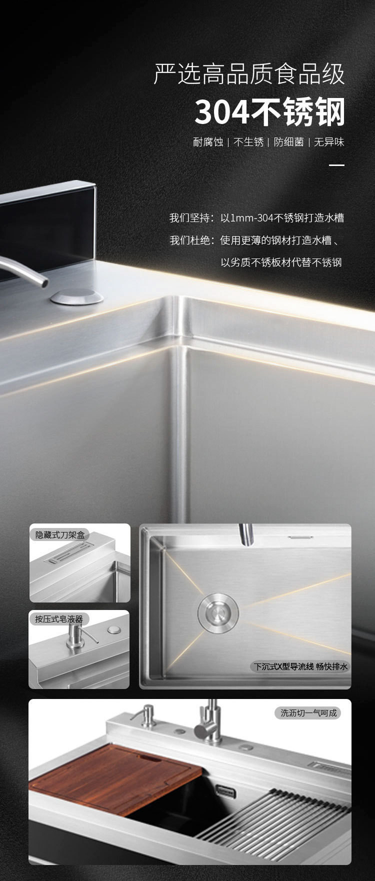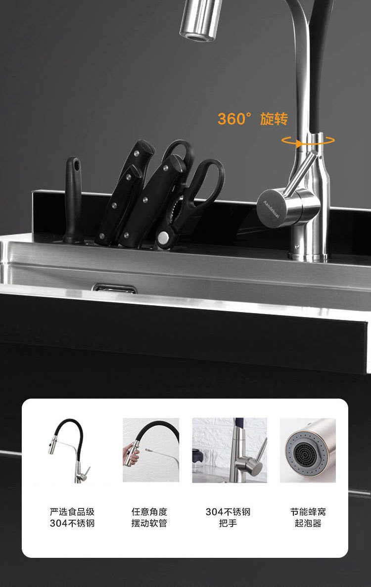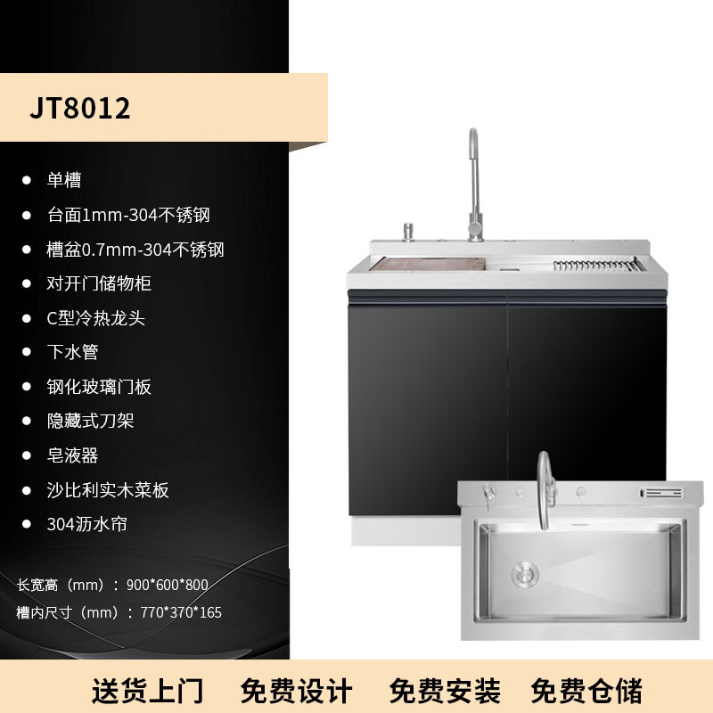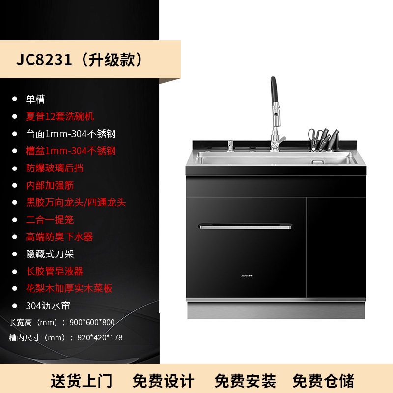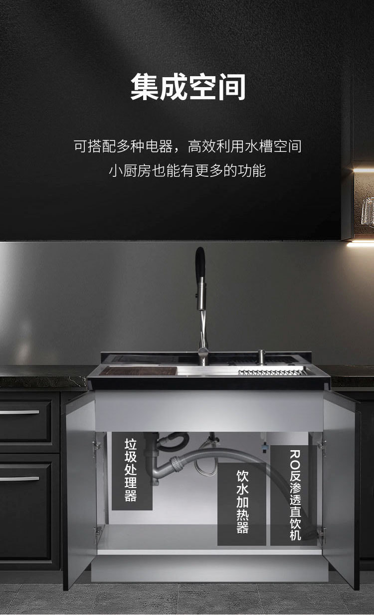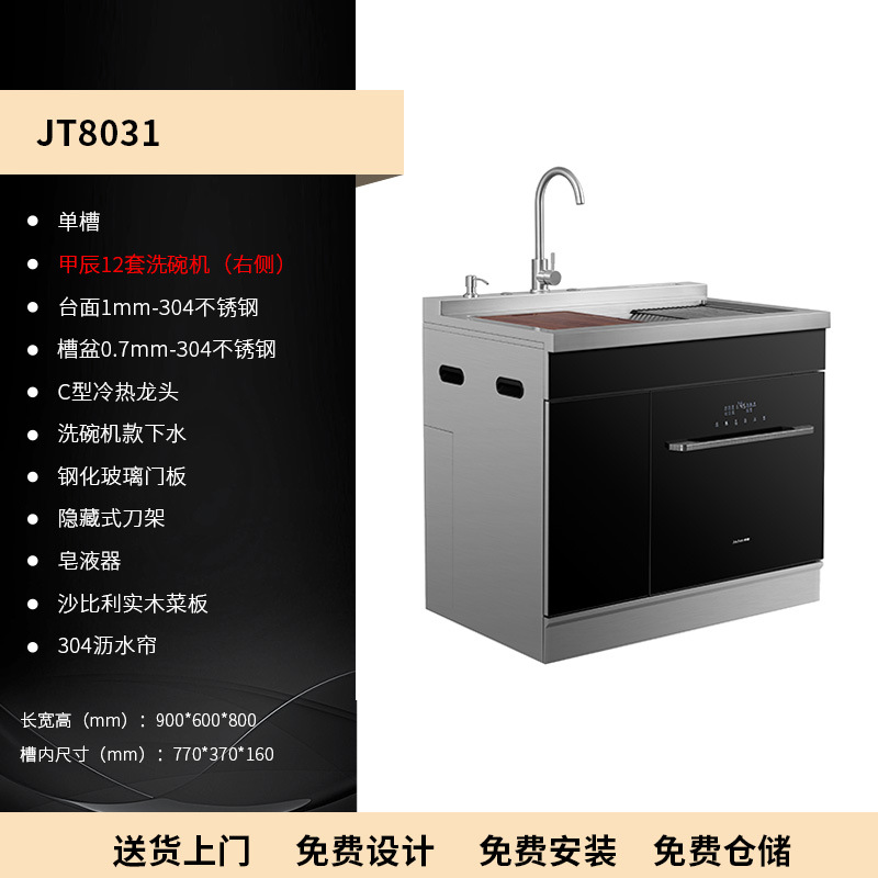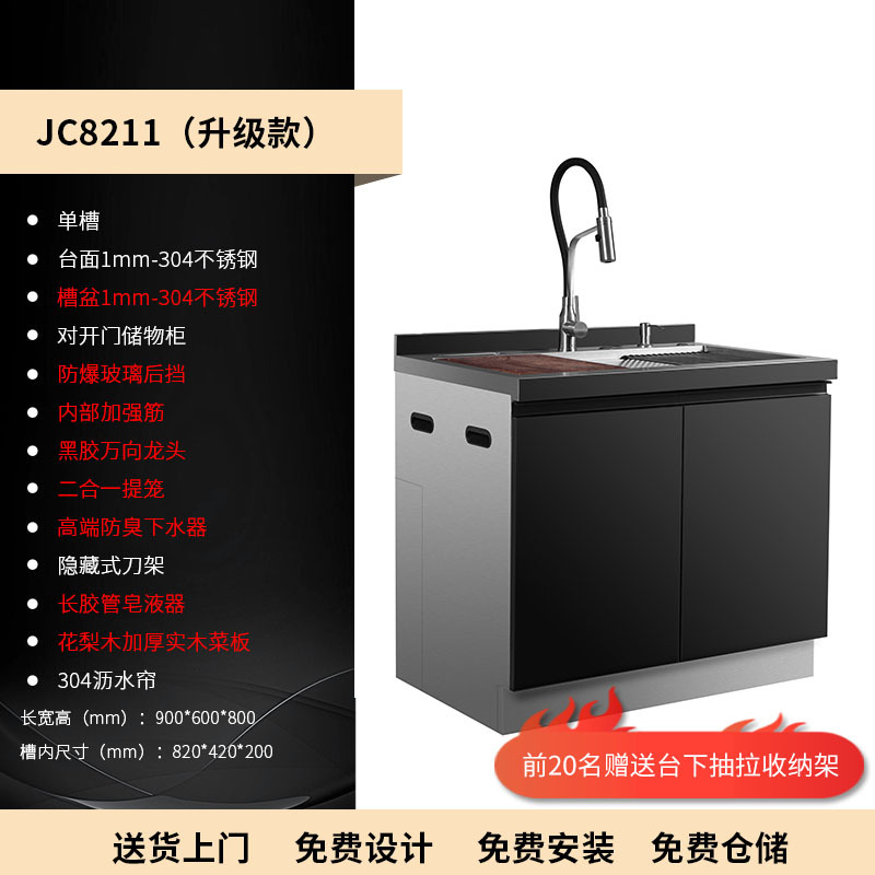 스테인레스 스틸 일체형 싱크대 일체형 캐비닛 주방 304 브러시드 소형 대형 수납 캐비닛 식기 세척기 오래된 주방 개조스토어 가기