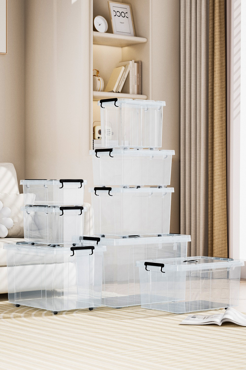 투명 초대형 수납함 장난감 플라스틱 수납함 뚜껑과 바퀴가 달린 옷 이불 정리함스토어 가기