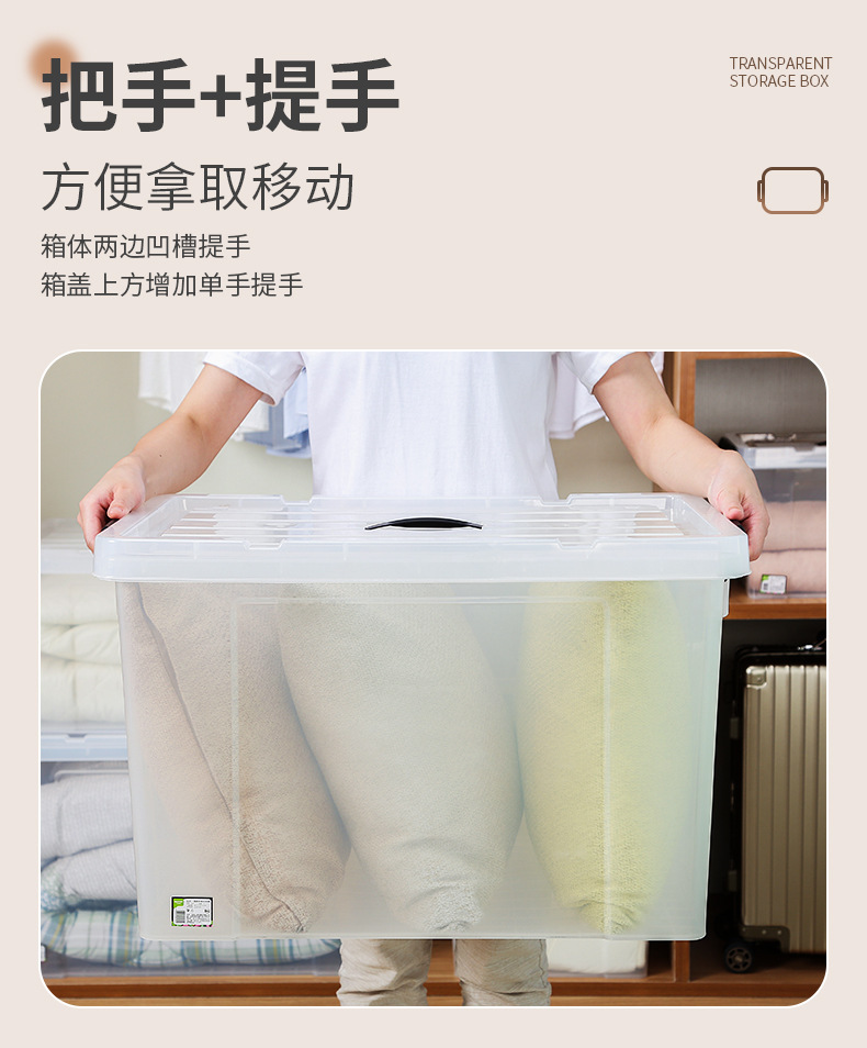 투명 초대형 수납함 장난감 플라스틱 수납함 뚜껑과 바퀴가 달린 옷 이불 정리함