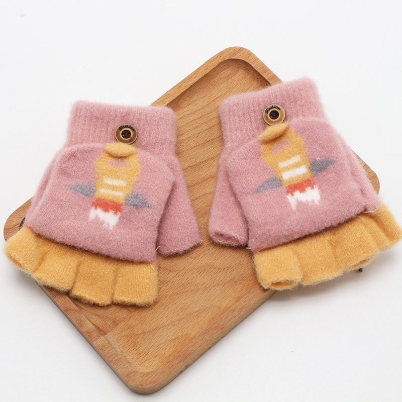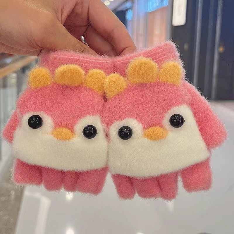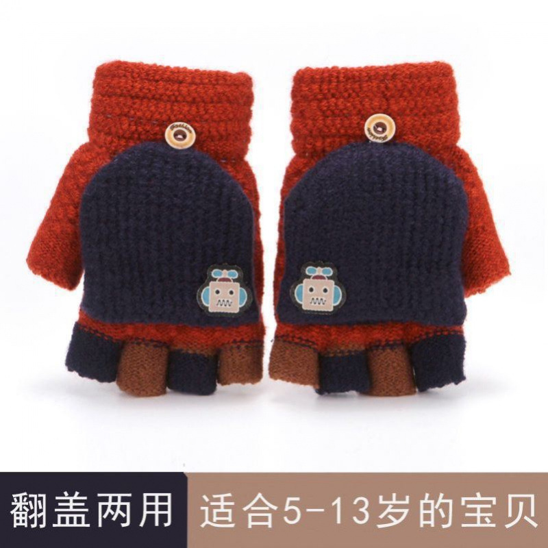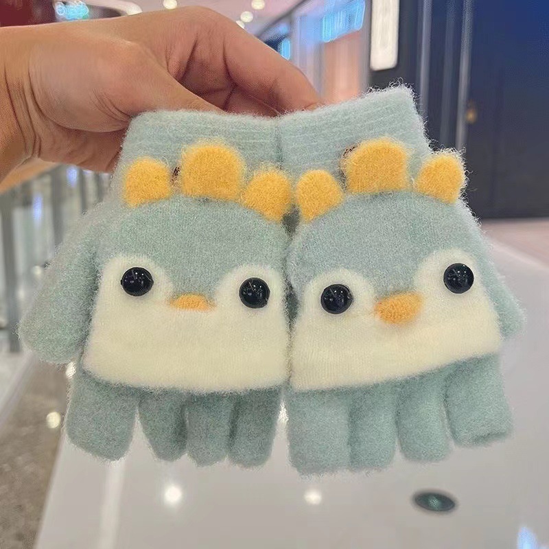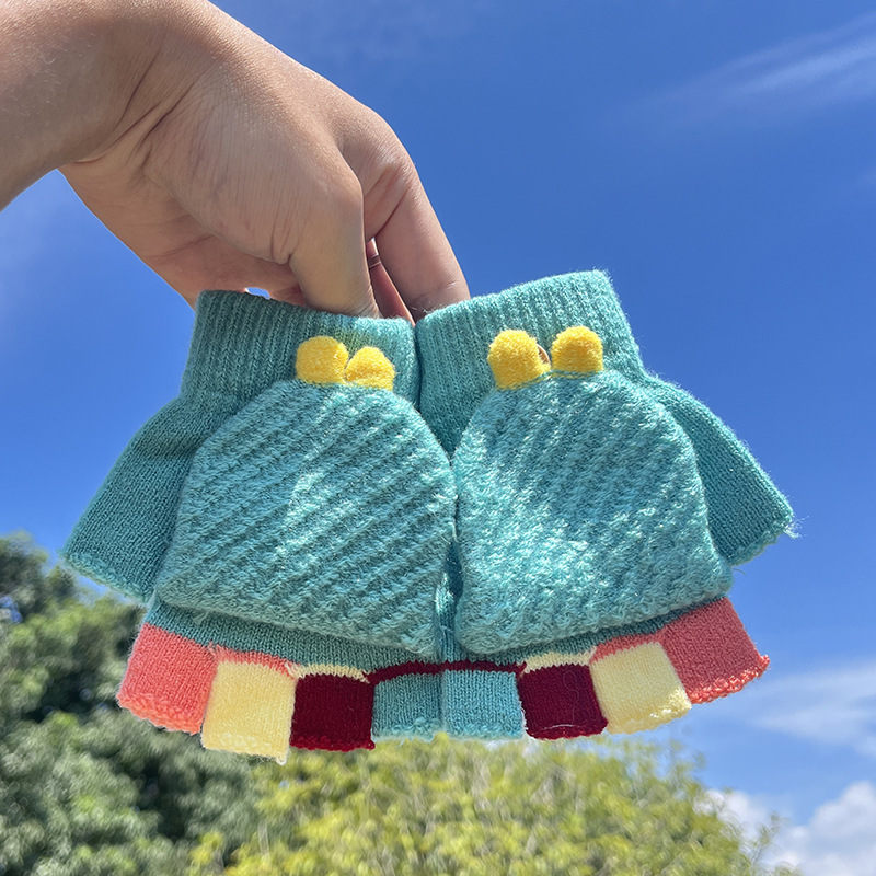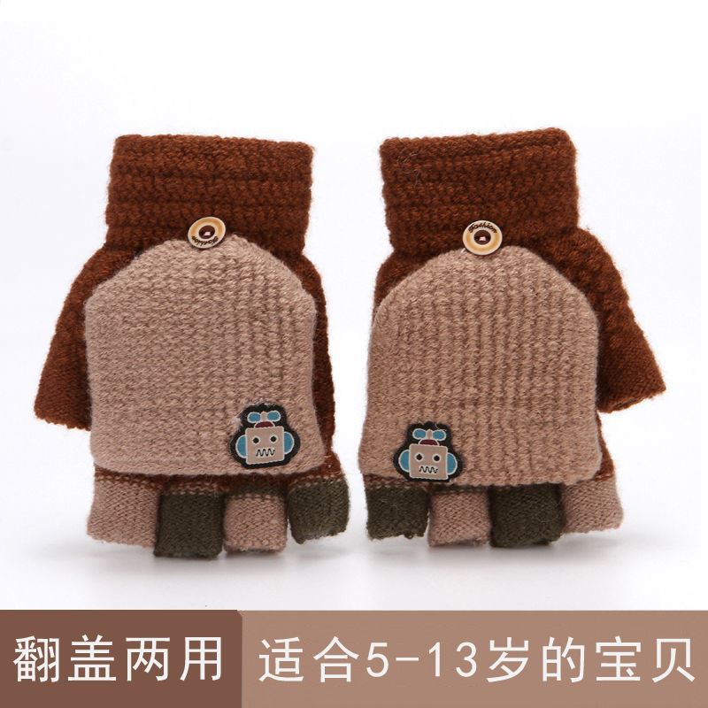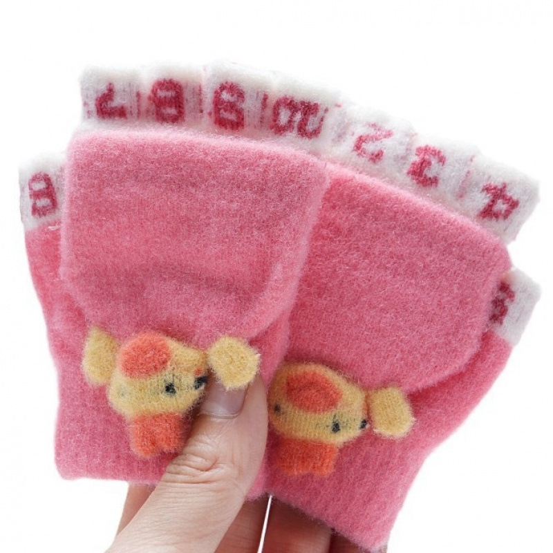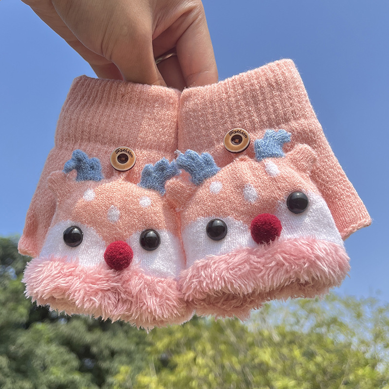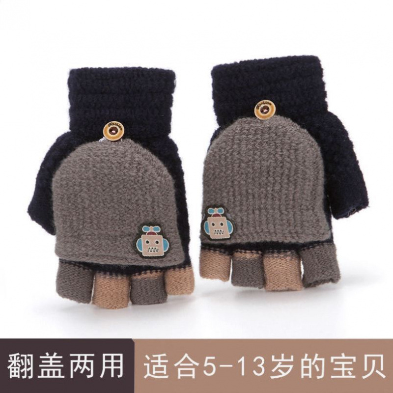 가을 겨울 남녀 아기 두꺼운 따뜻한 장갑, 유아 다섯 손가락 초등학생 쓰기 반 손가락 플립 어린이 장갑스토어 가기