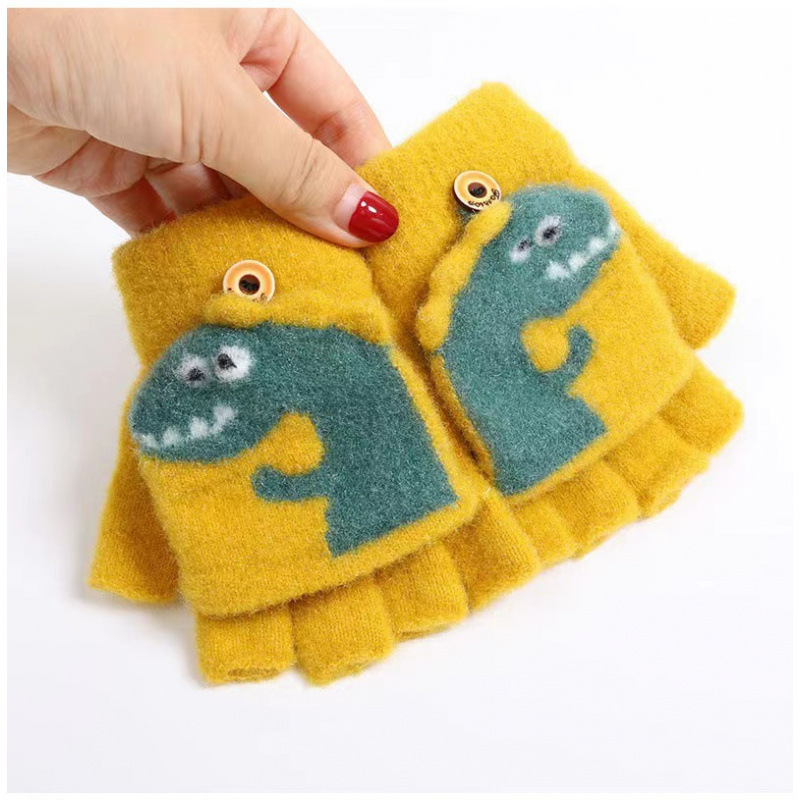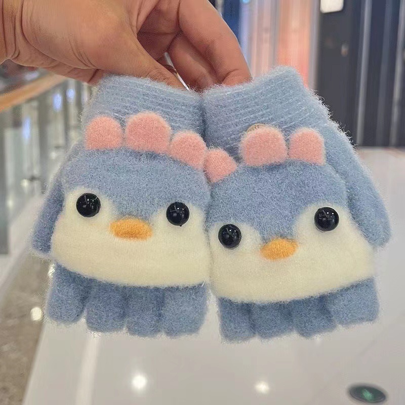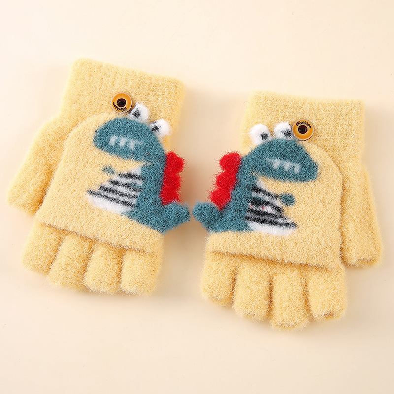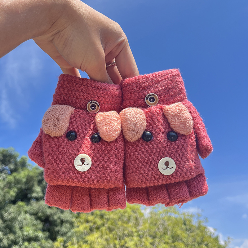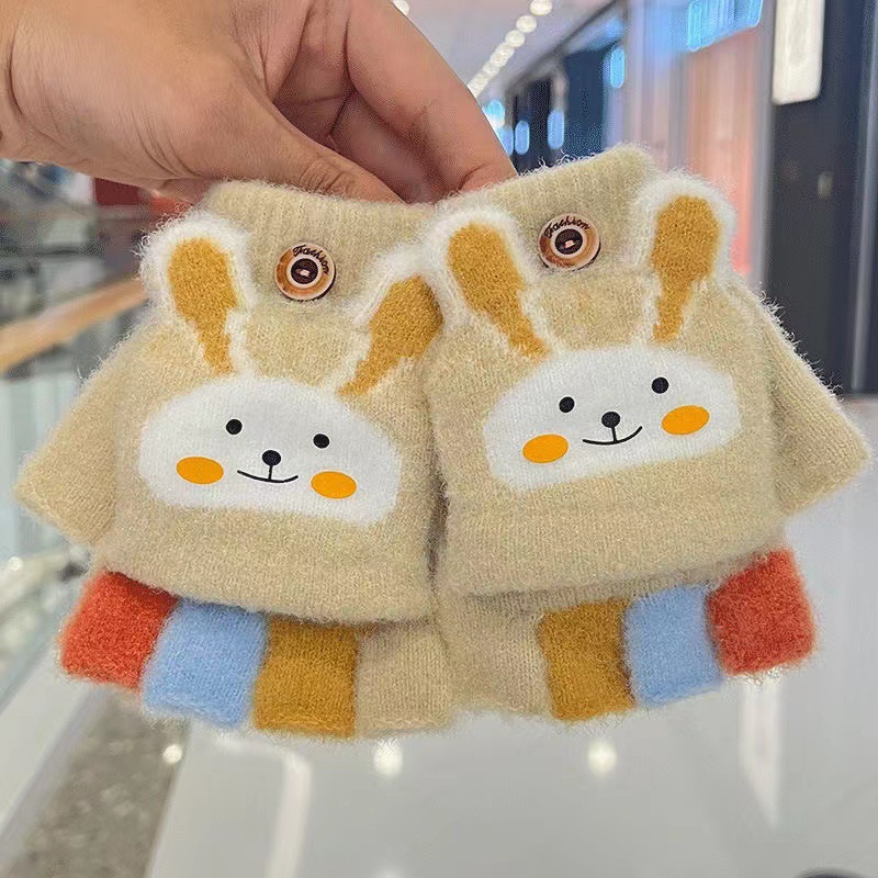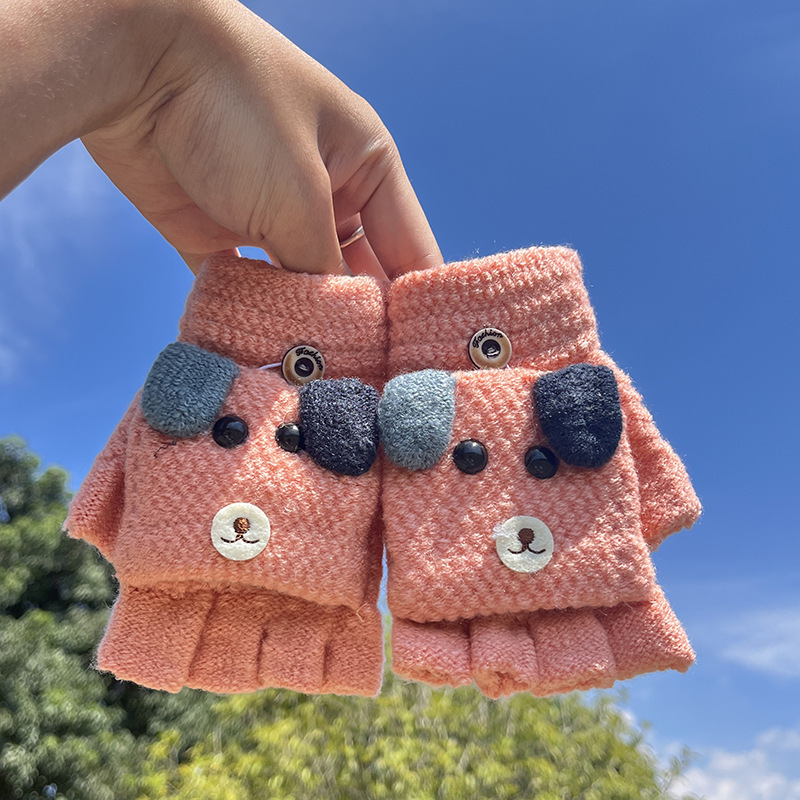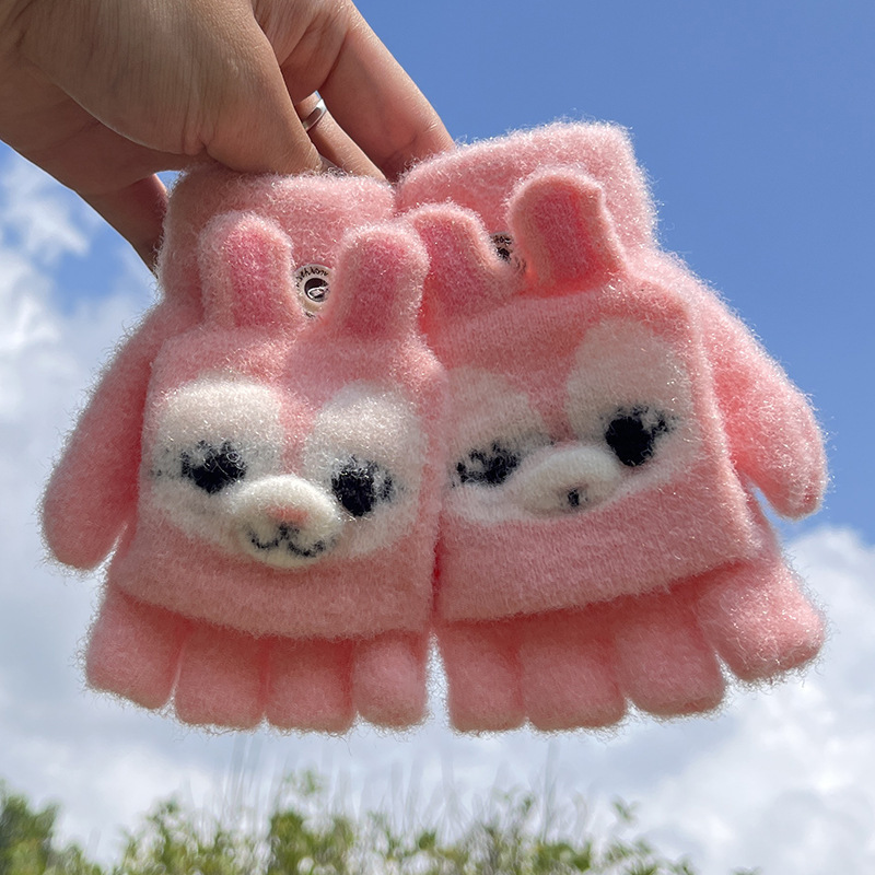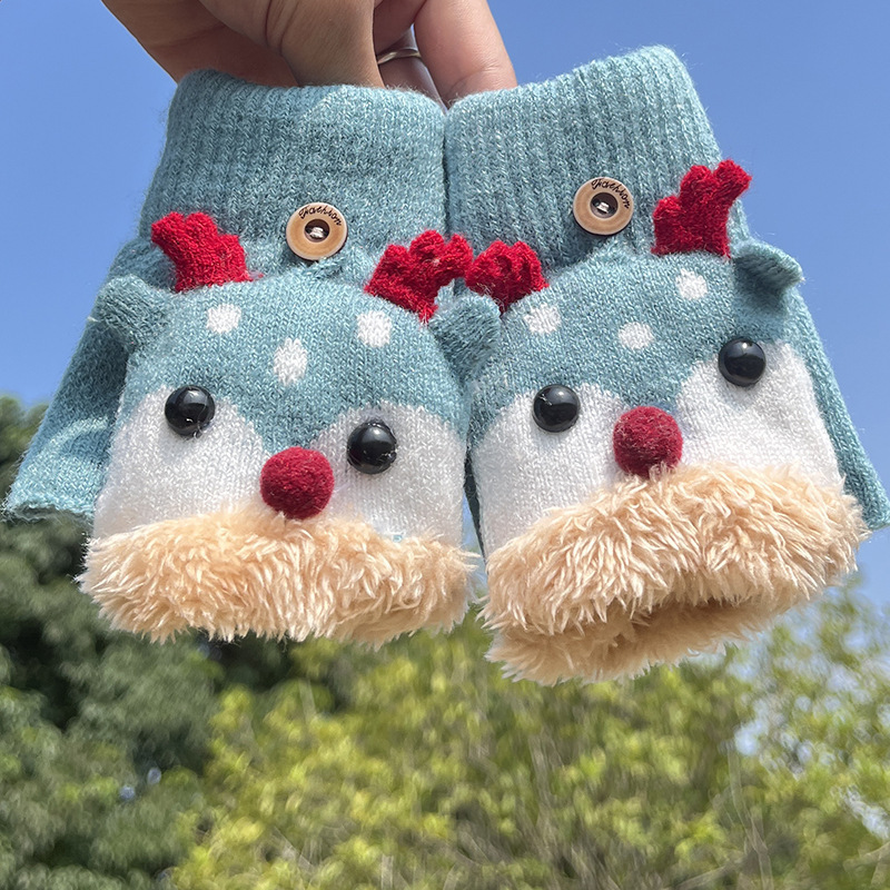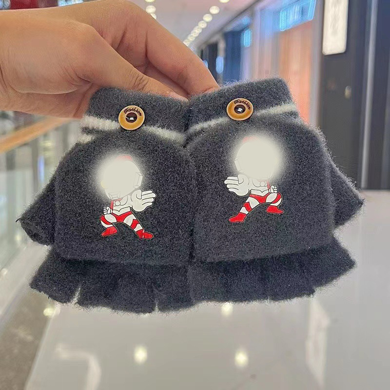 가을 겨울 남녀 아기 두꺼운 따뜻한 장갑, 유아 다섯 손가락 초등학생 쓰기 반 손가락 플립 어린이 장갑스토어 가기