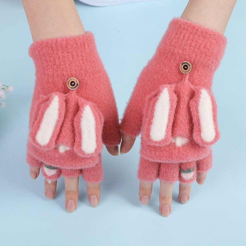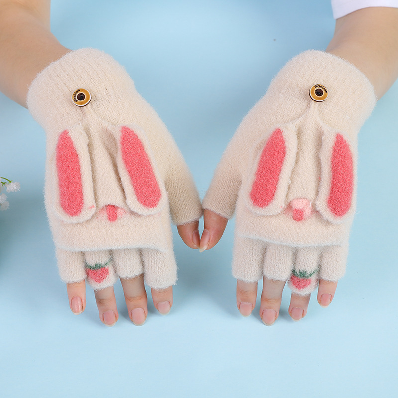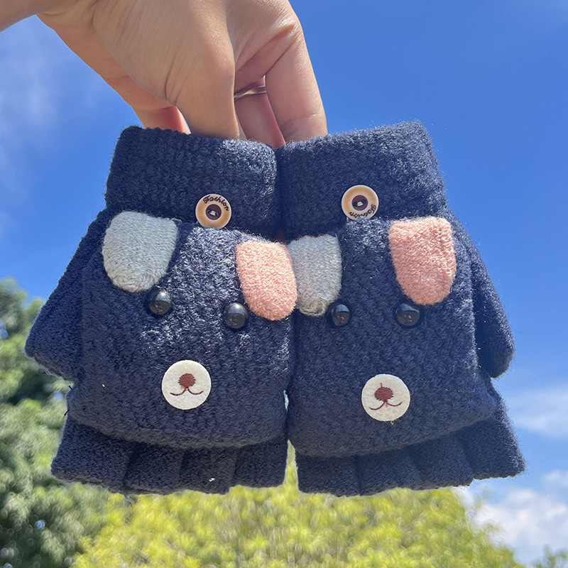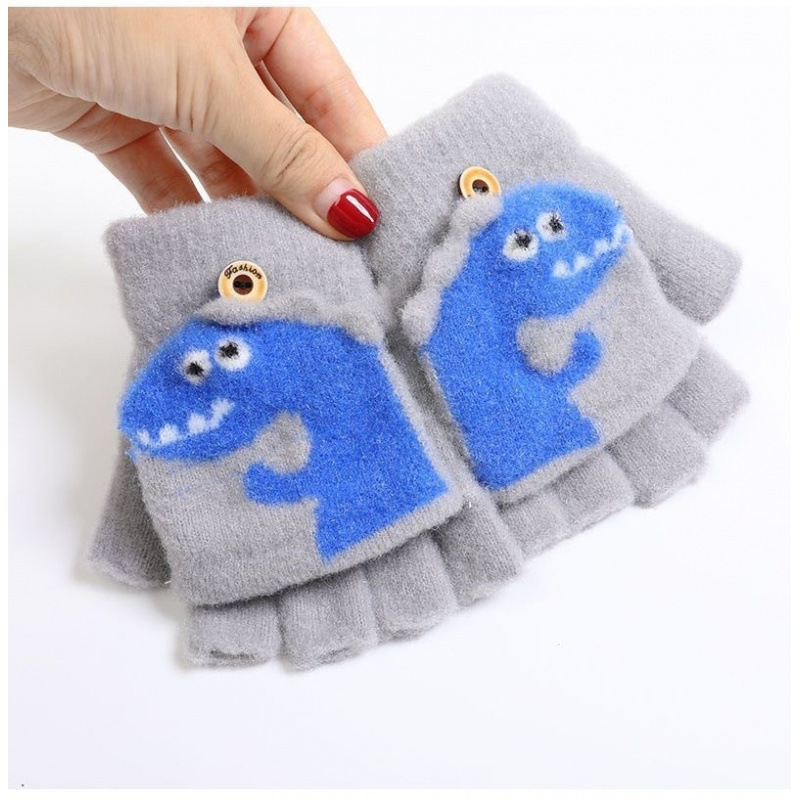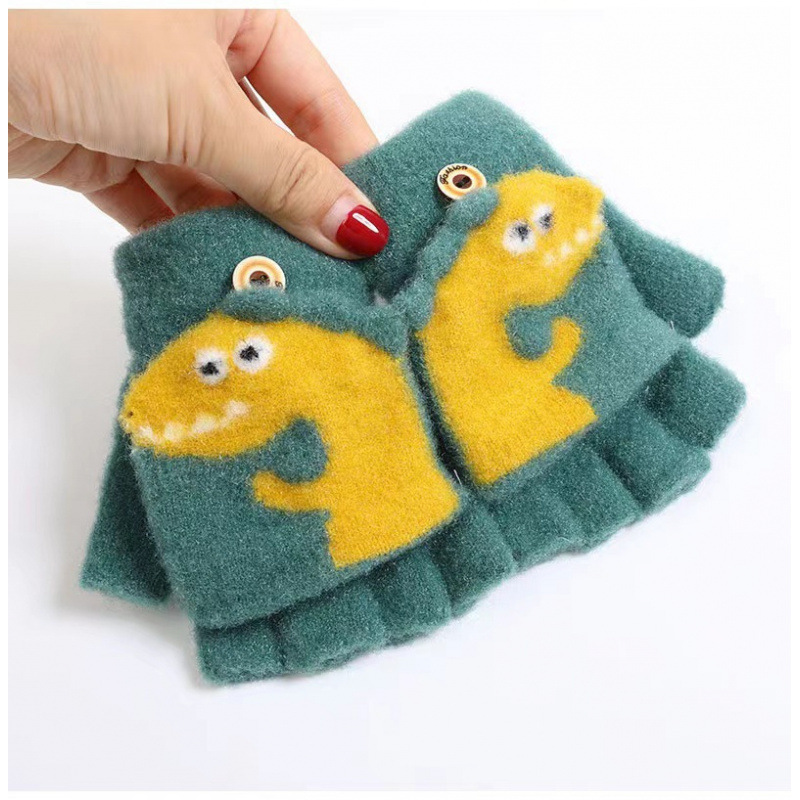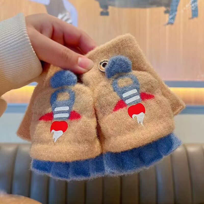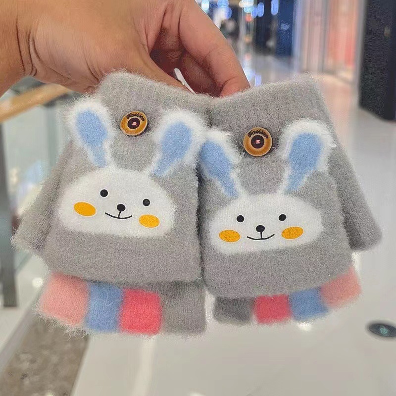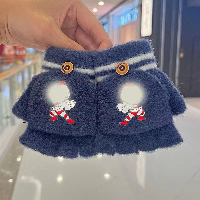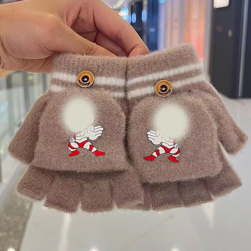 가을 겨울 남녀 아기 두꺼운 따뜻한 장갑, 유아 다섯 손가락 초등학생 쓰기 반 손가락 플립 어린이 장갑스토어 가기