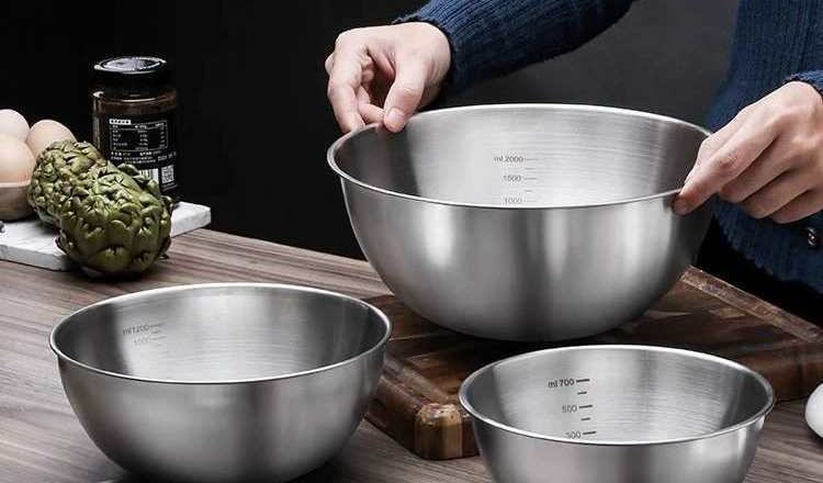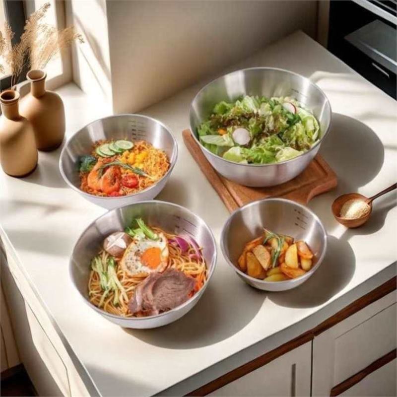 계란을 깨고 국수를 반죽하는 스케일이 있는 316 스테인레스 스틸 요리 그릇과 샐러드 냉면과 과일 베이킹 그릇을 수출합니다.스토어 가기