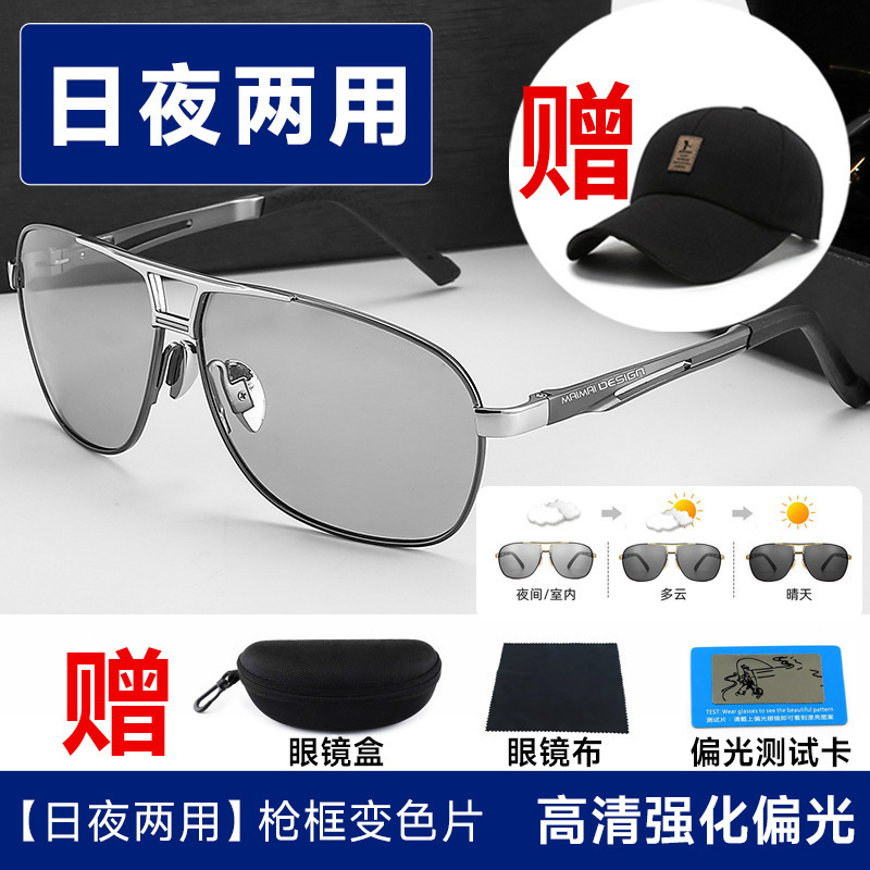 남성용 주야간 편광 선글라스, 운전자용 선글라스, 자외선 차단, 고화질 낚시 및 운전용 선글라스