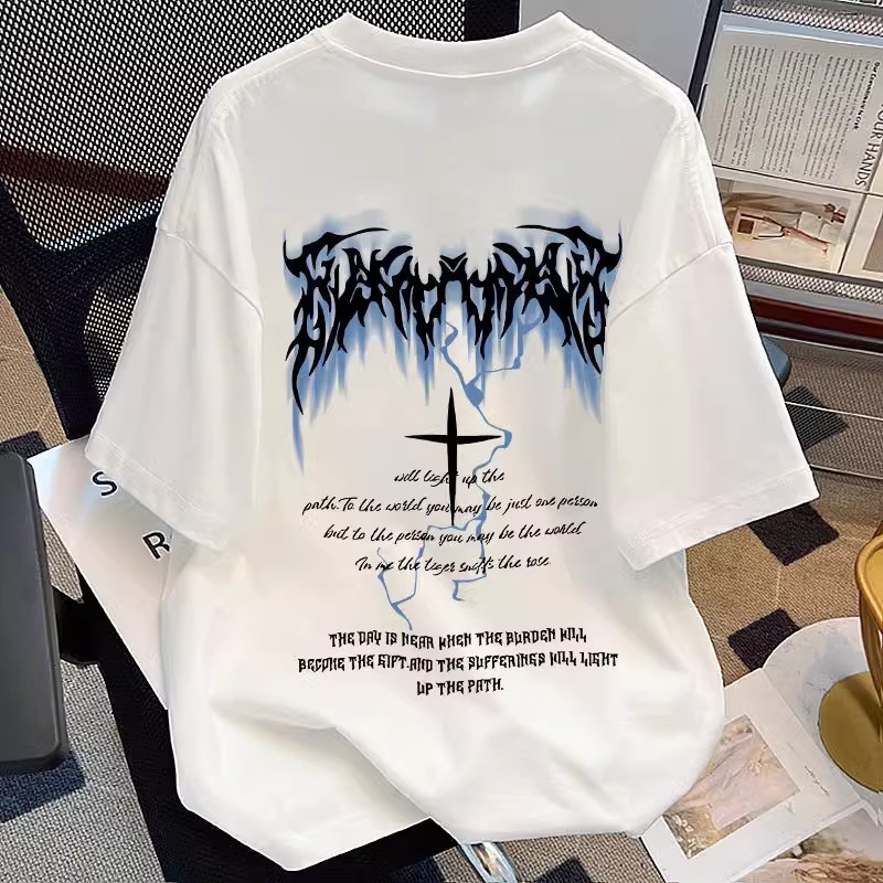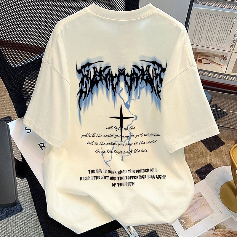 100% 헤비급 남성 순면 반팔 남성 아메리칸 레트로 핸섬 루즈 여름 반팔 도매 티셔츠 남성 트렌디 브랜드스토어 가기