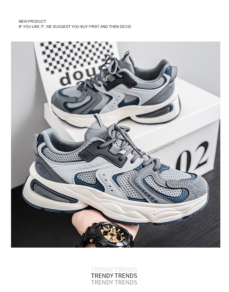 여름 남성 신발 2025 새로운 통기성 메쉬 스포츠 신발 남성 유행 다목적 두꺼운 밑창 캐주얼 아빠 신발 유행 신발스토어 가기