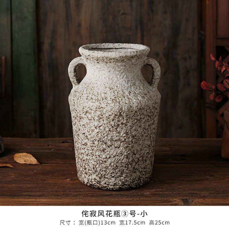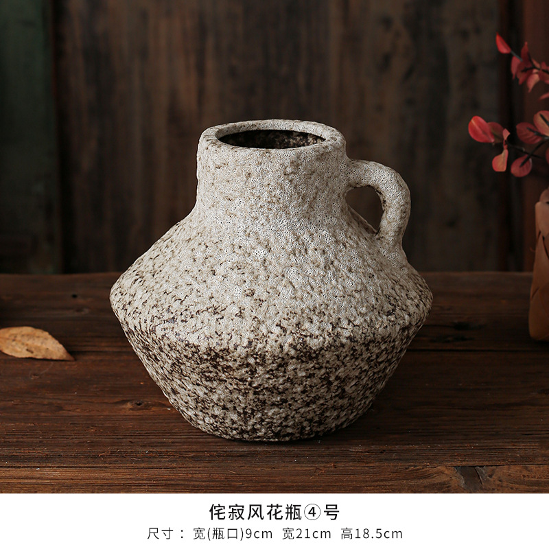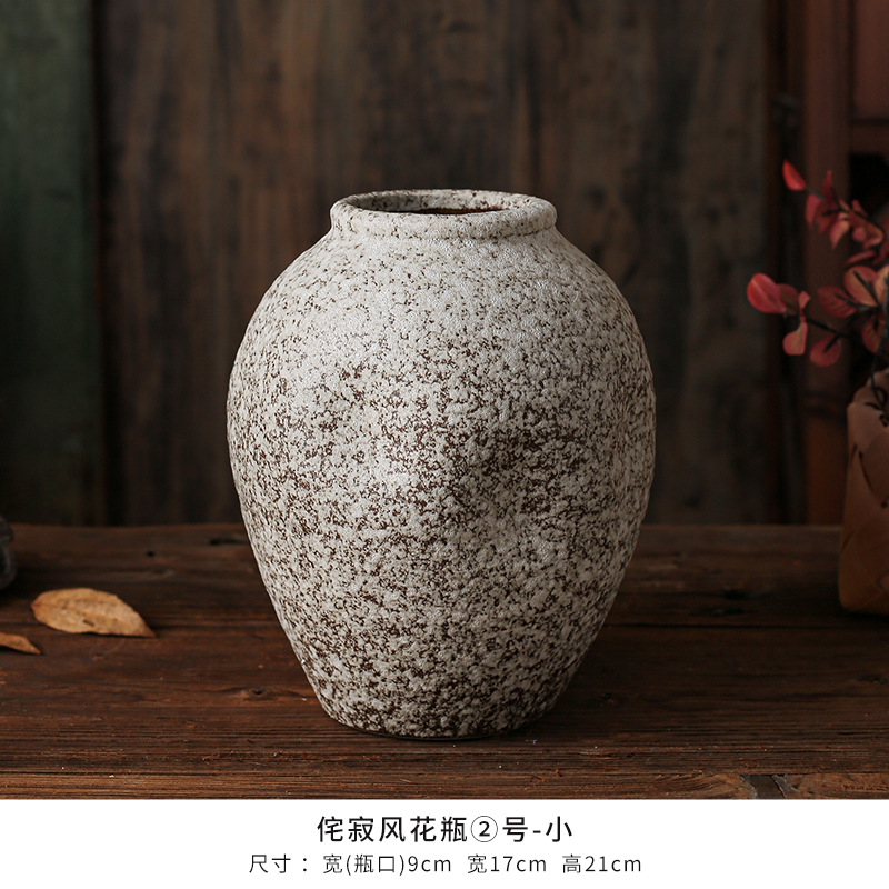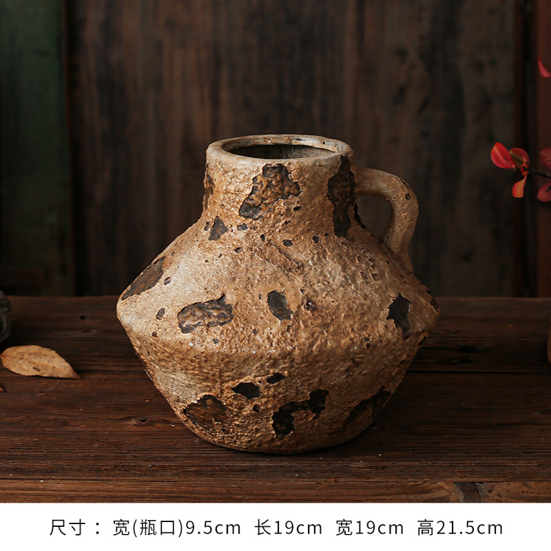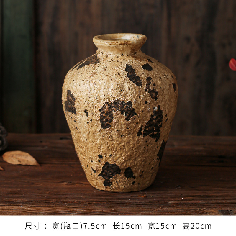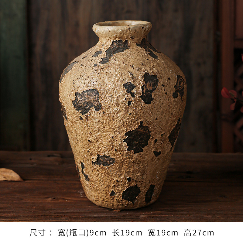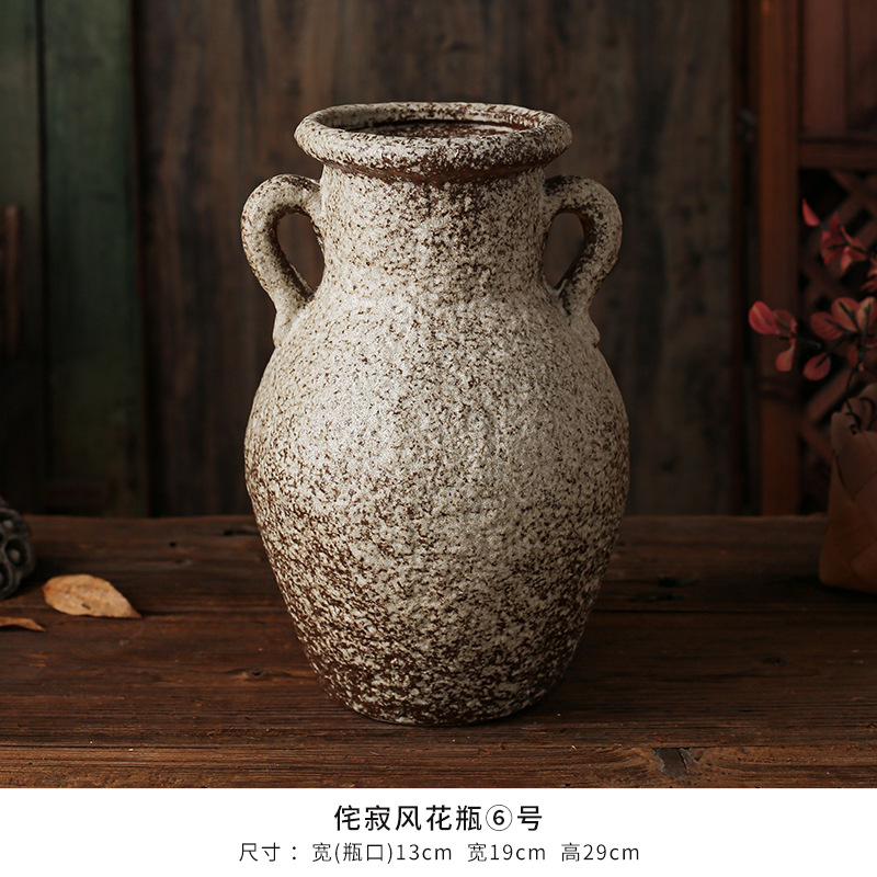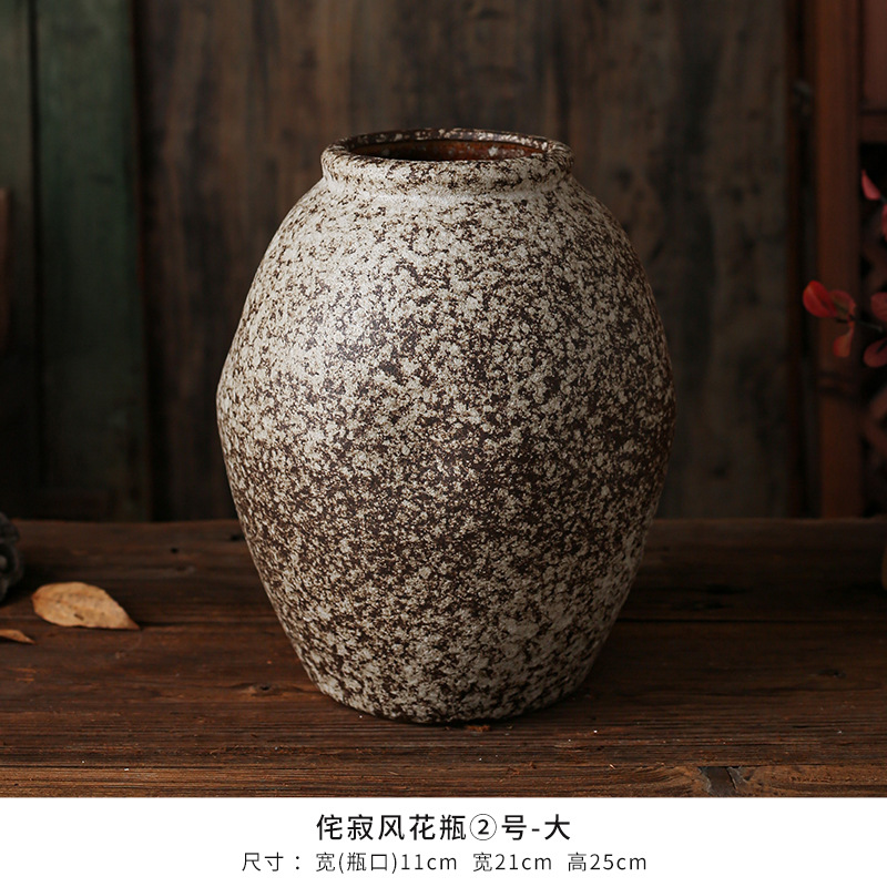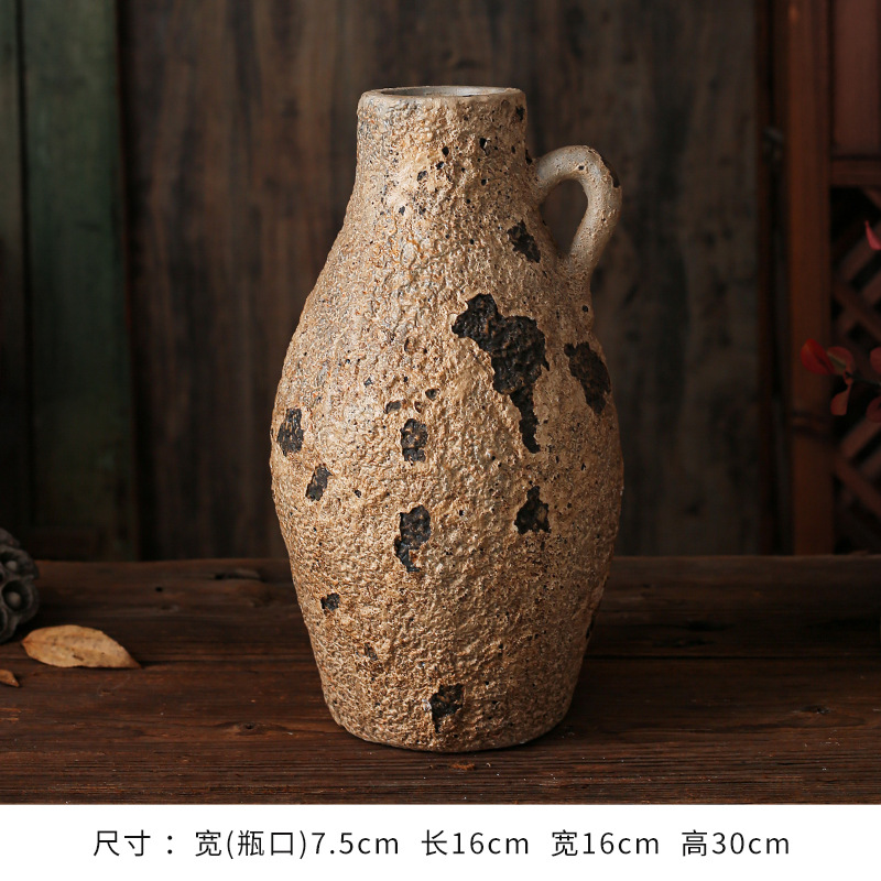 복고풍 와비사비 스타일 세라믹 꽃병, 현관 TV 캐비닛, 얼룩덜룩한 오래된 거친 도자기 항아리, B&B 꽃꽂이 장식품스토어 가기
