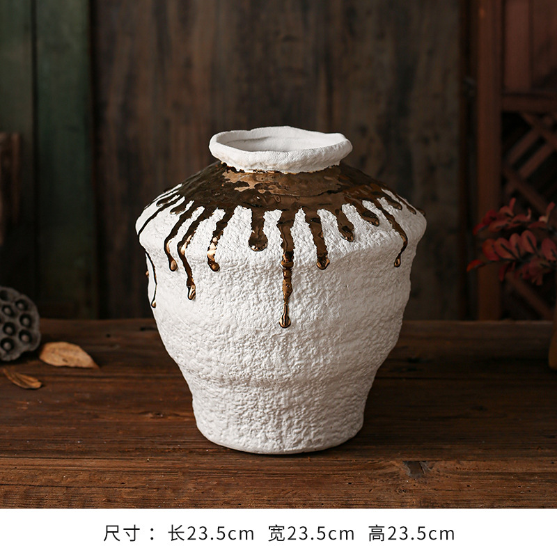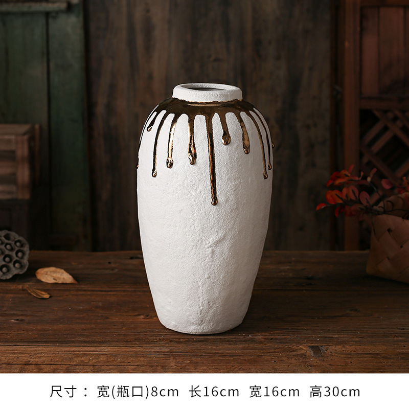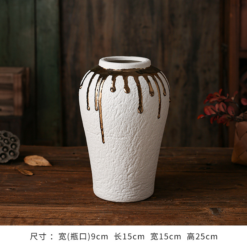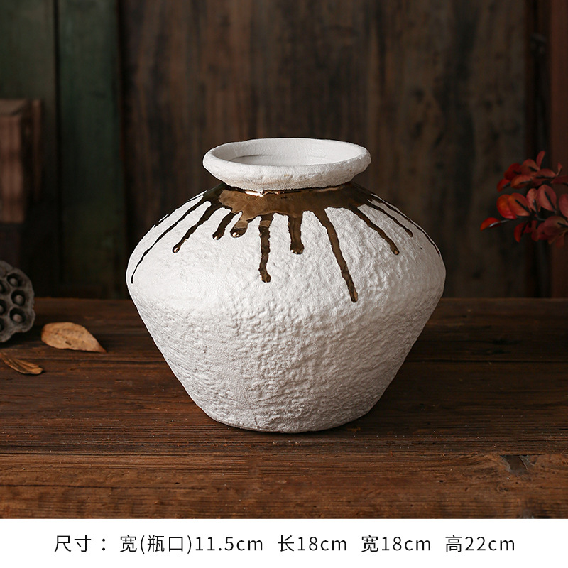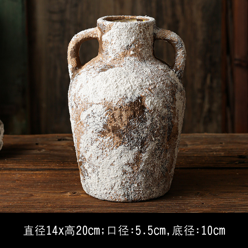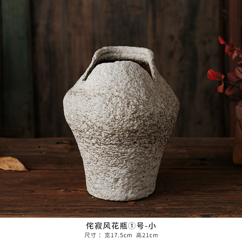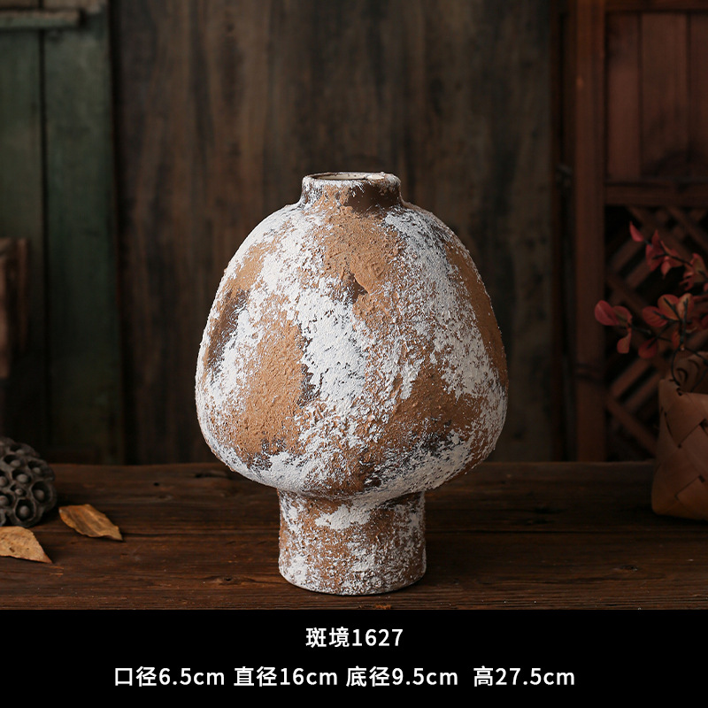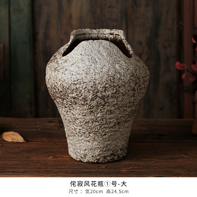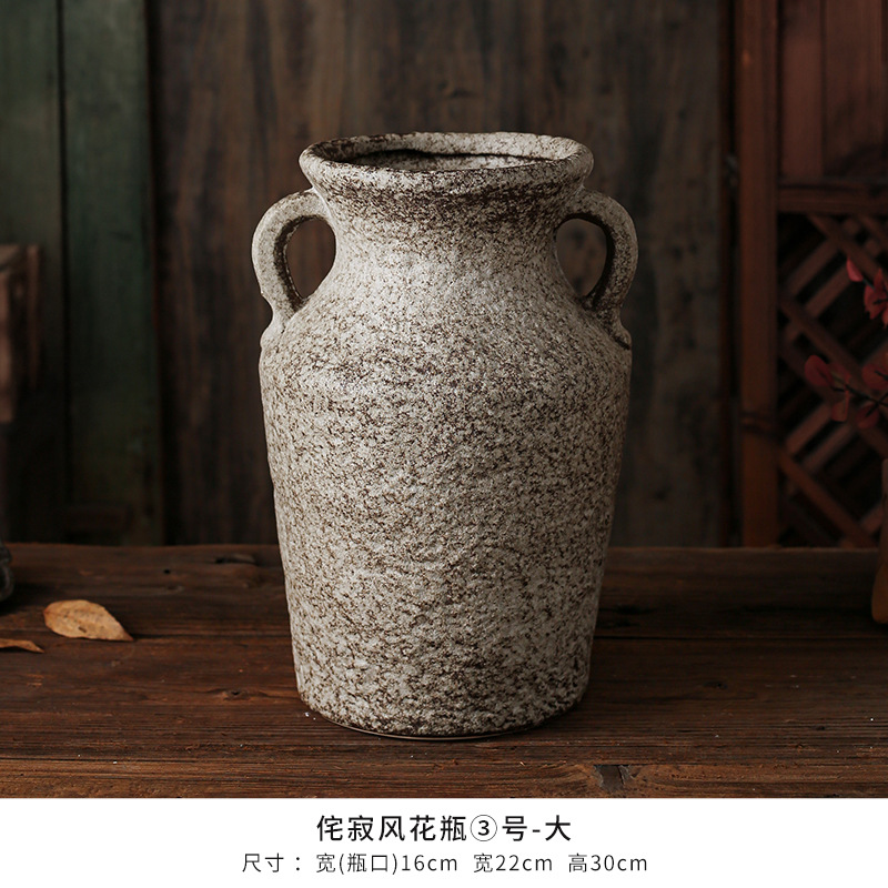 복고풍 와비사비 스타일 세라믹 꽃병, 현관 TV 캐비닛, 얼룩덜룩한 오래된 거친 도자기 항아리, B&B 꽃꽂이 장식품스토어 가기