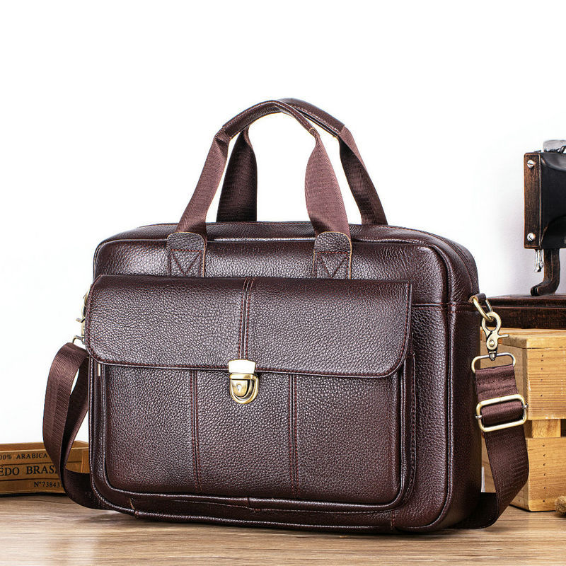 대용량 정품 가죽 남성용 가방, 1층 소가죽 휴대용 서류 가방, 가로 컴퓨터 가방, 캐주얼 크로스 바디 숄더백 도매스토어 가기