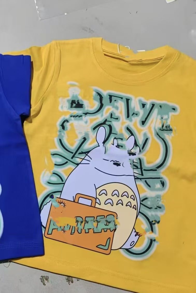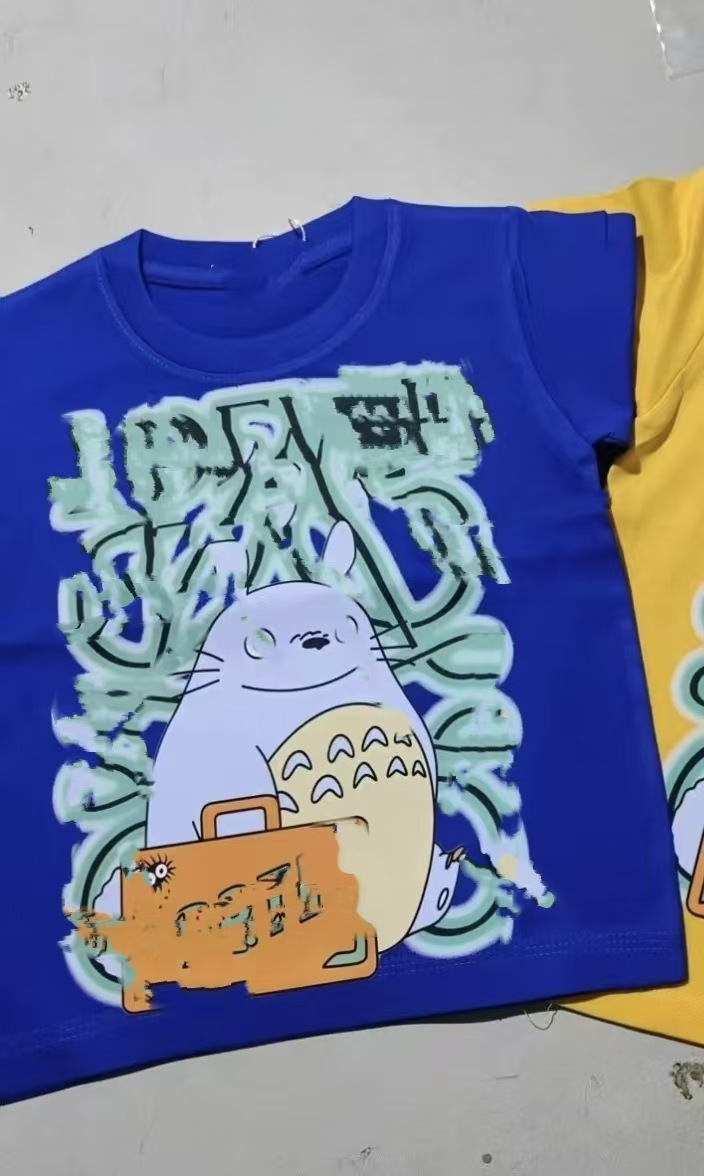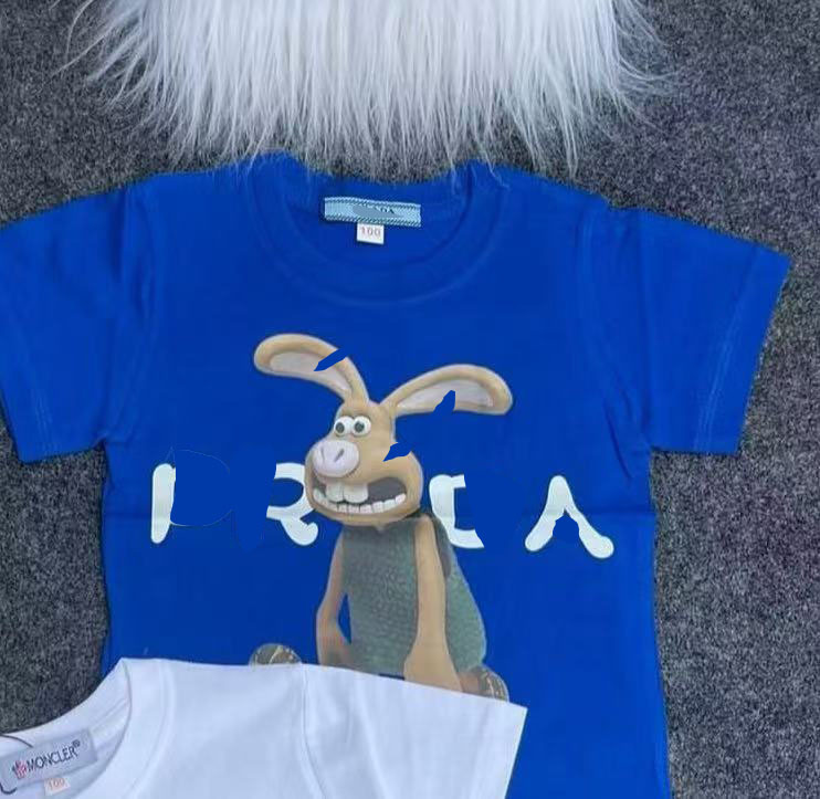 국경을 넘는 새로운 230g 순면 프린트 아동용 남성용 및 여성용 반팔 티셔츠, 루즈하고 캐주얼하며 통기성이 뛰어나고 다재다능한 탑
