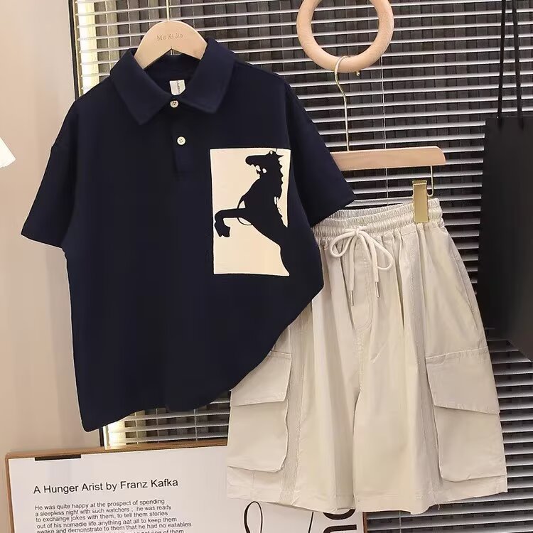아동복 소년 여름 폴로 셔츠 반팔 2025 한국어 버전 새로운 중대형 어린이 여름 소년 여름 티셔츠 유행 t