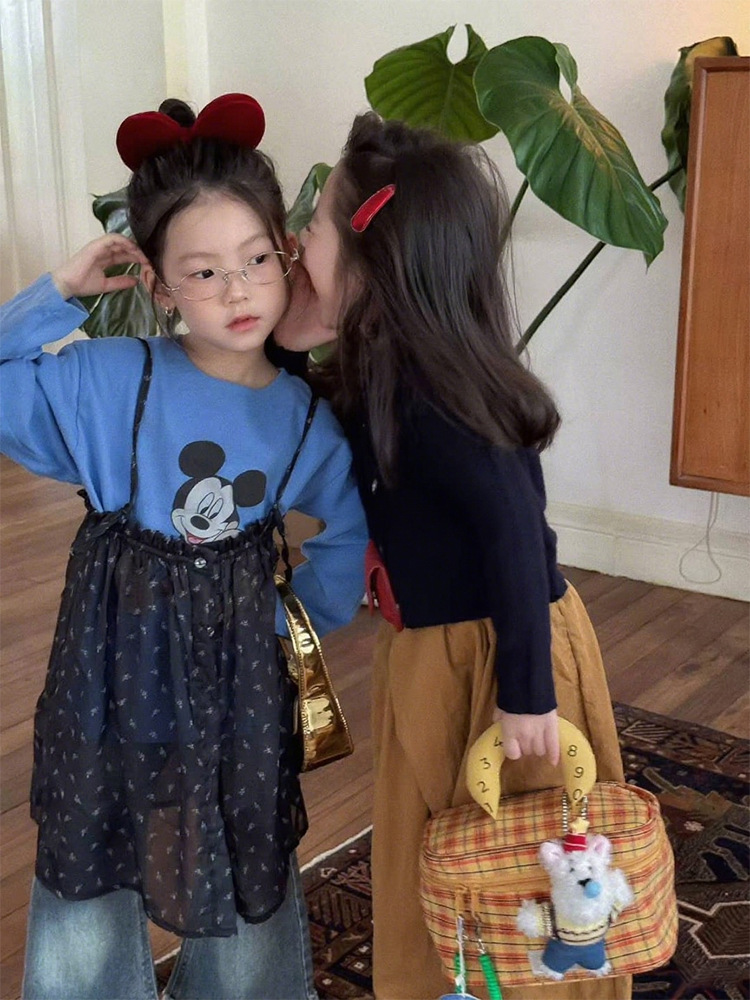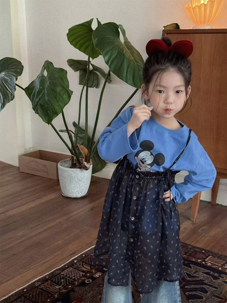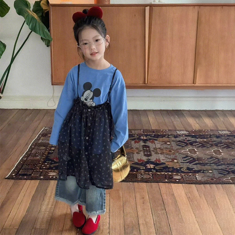 여자 한국 스타일 가을 새로운 만화 탑 서스펜더 메쉬 스커트 2025 레이스 마이크로 플레어 청바지 투피스 트렌디 세트스토어 가기