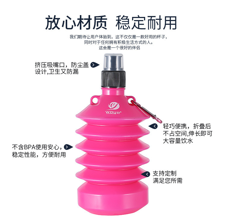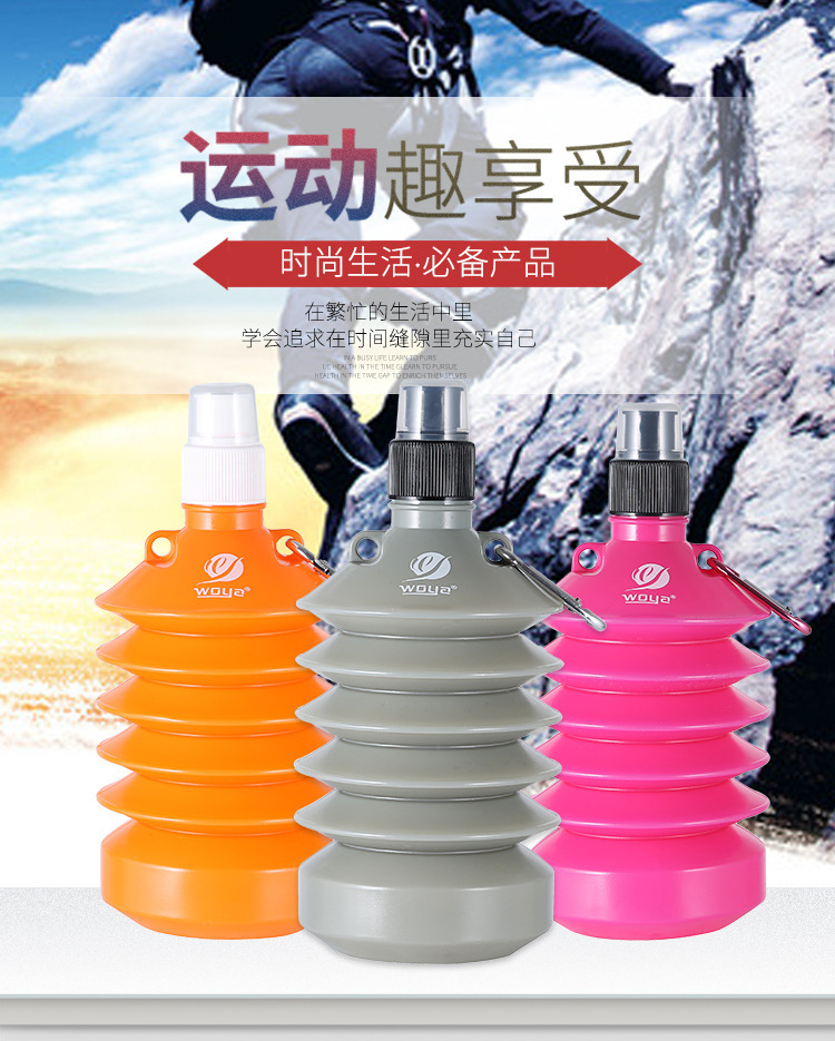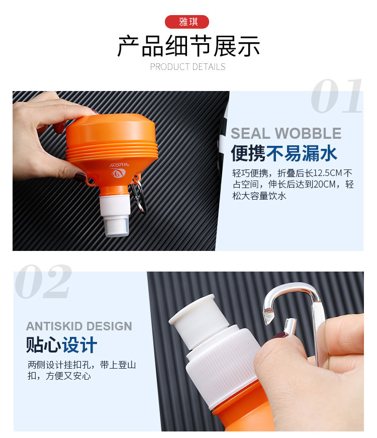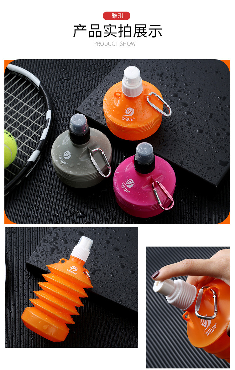 맞춤형 등산 플라스틱 물컵, 후크가 있는 창의적인 휴대용 다기능 여행 등산 접이식 누수 방지 물컵