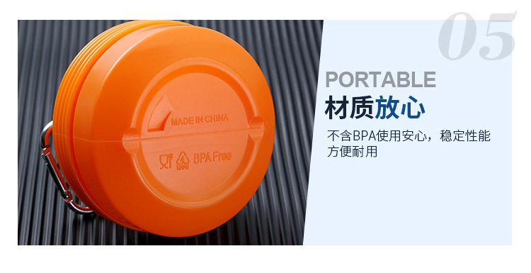 맞춤형 등산 플라스틱 물컵, 후크가 있는 창의적인 휴대용 다기능 여행 등산 접이식 누수 방지 물컵스토어 가기